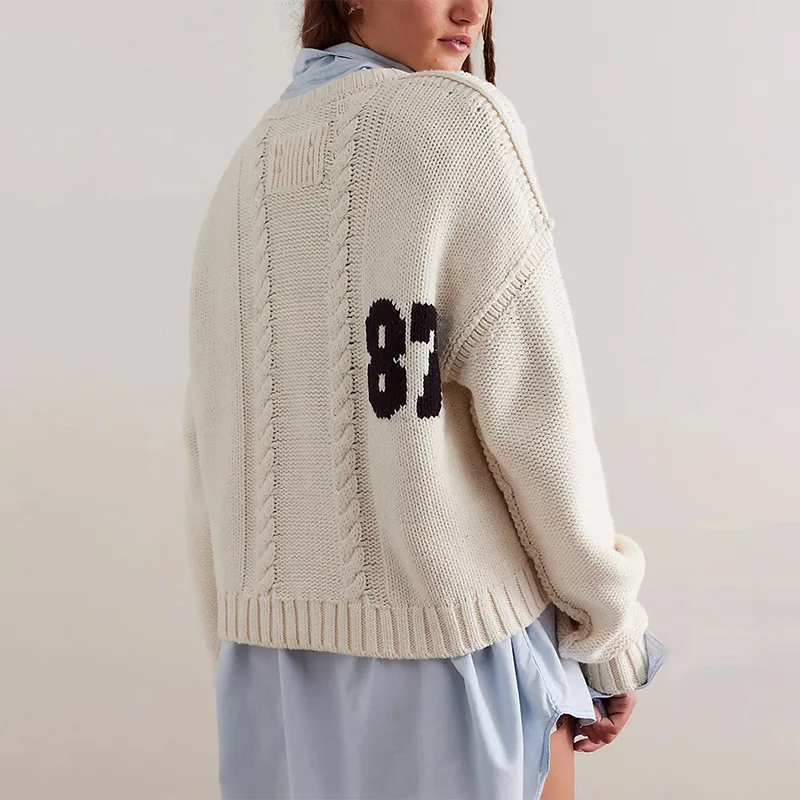 Letter Women's Sweaters Knitted Pullover Loose Long Sleeved Sweater