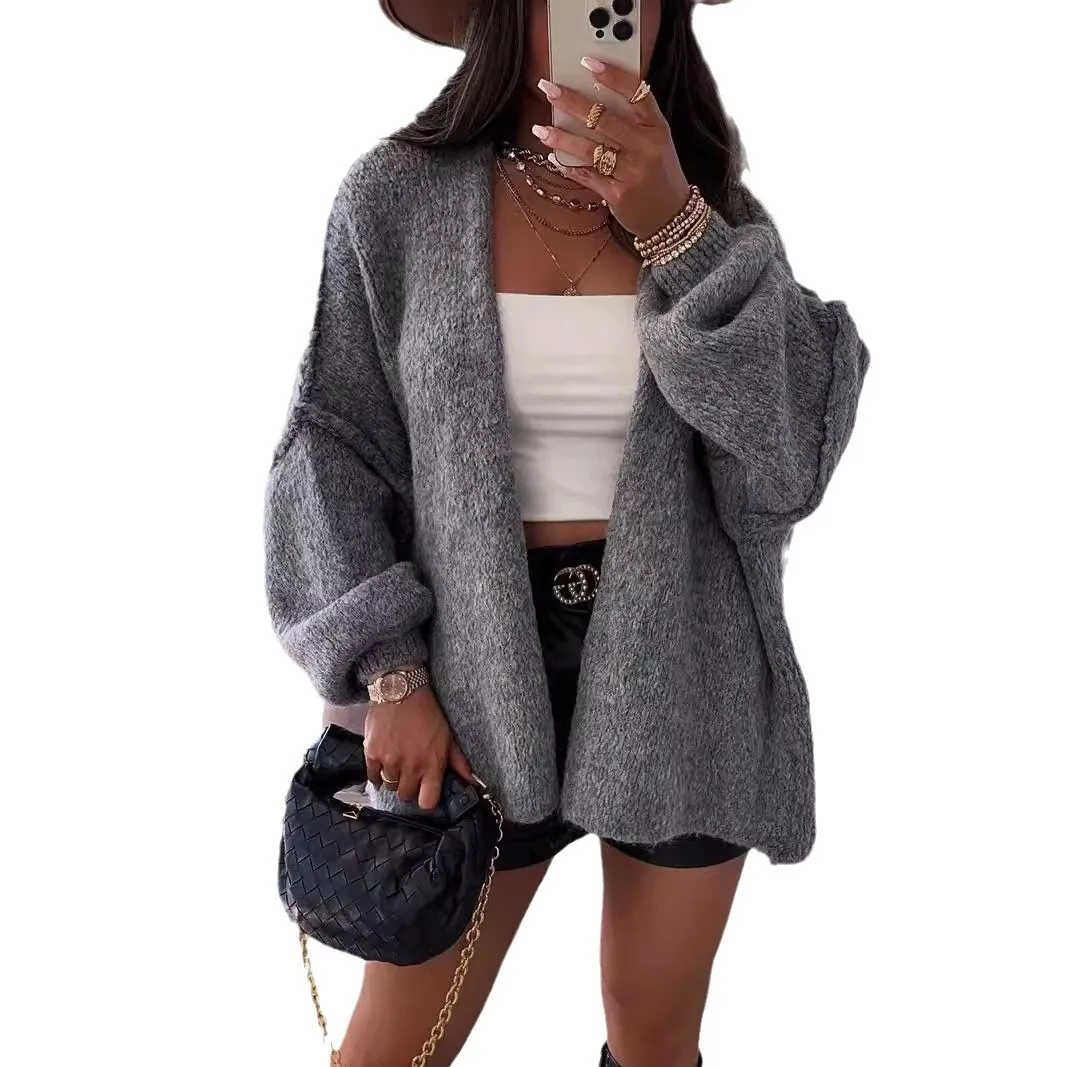 Casual Loose Solid Coat Knitted Fashion Sweater Cardigan Jacket for Women