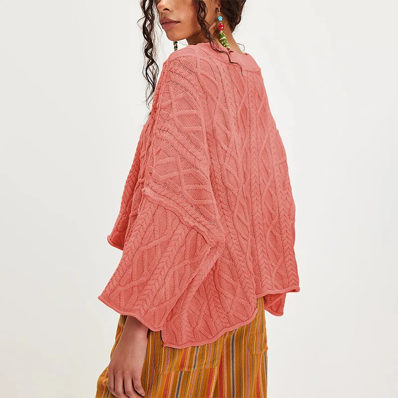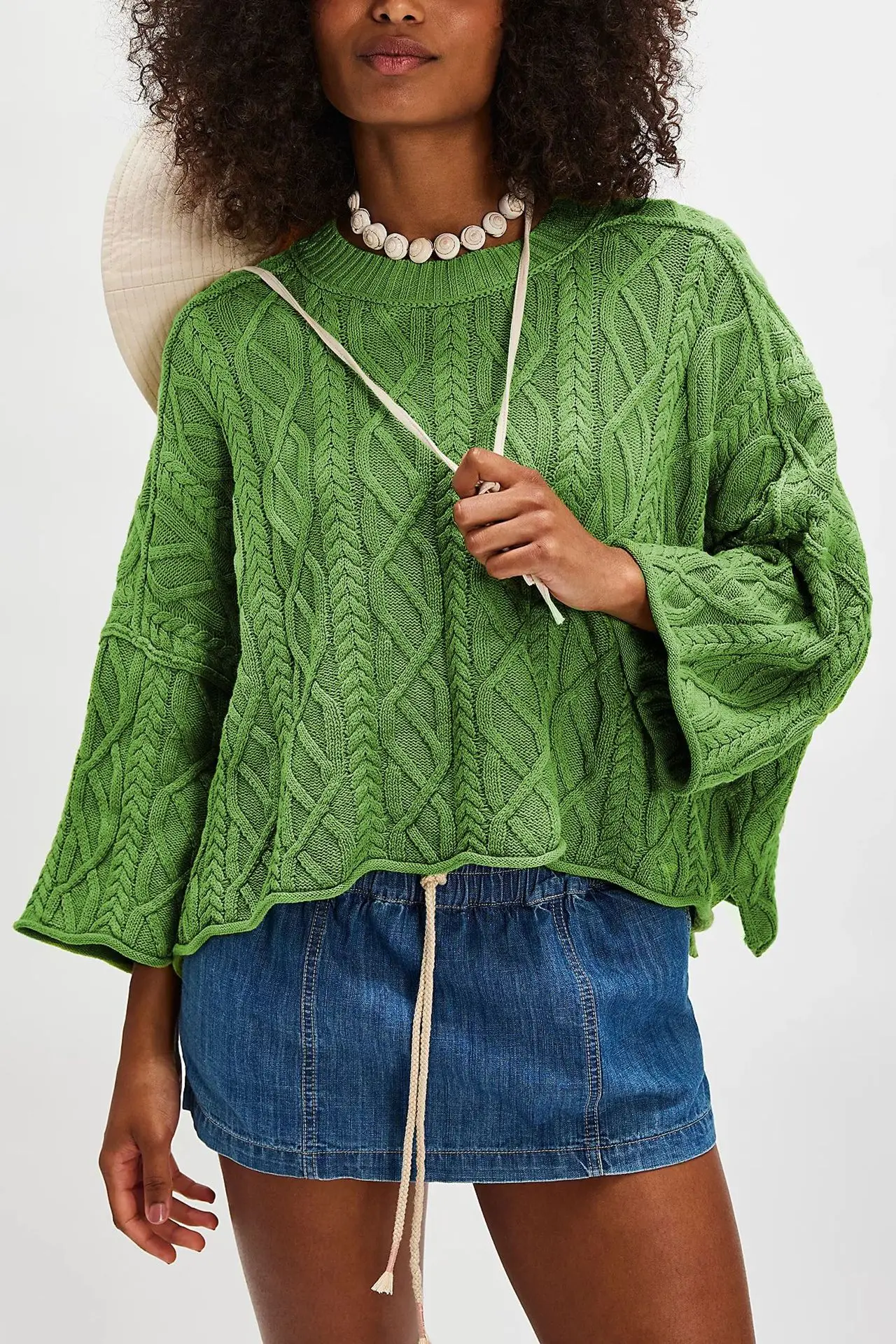 O Neck Short Knitting Top Fried Dough Twists Loose Pullovers Vintage Women's Sweaters