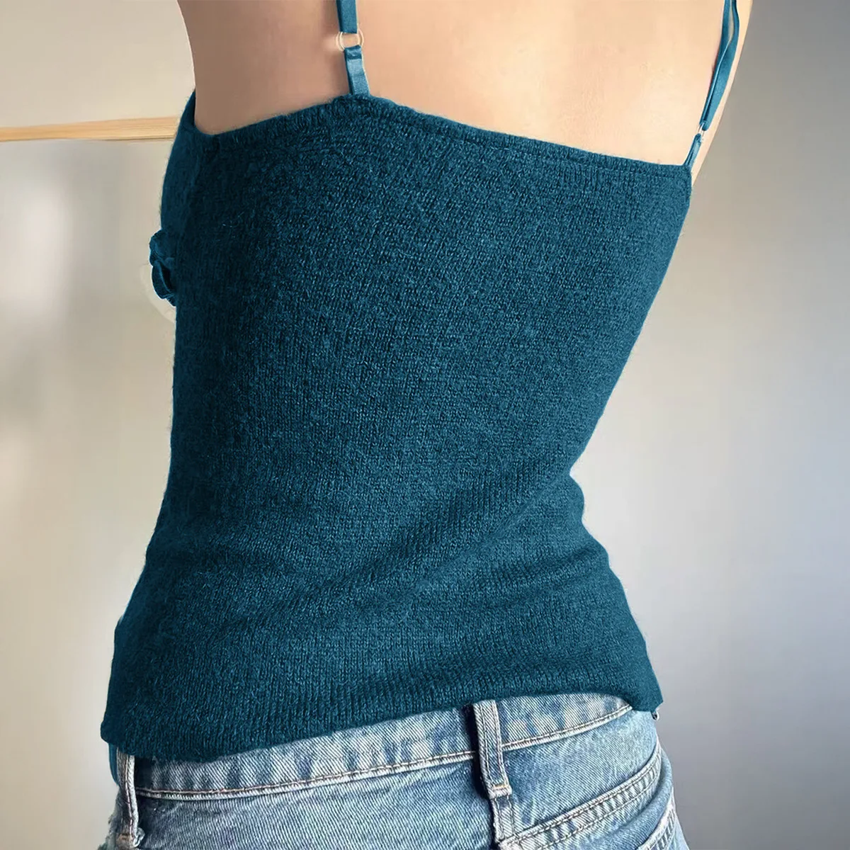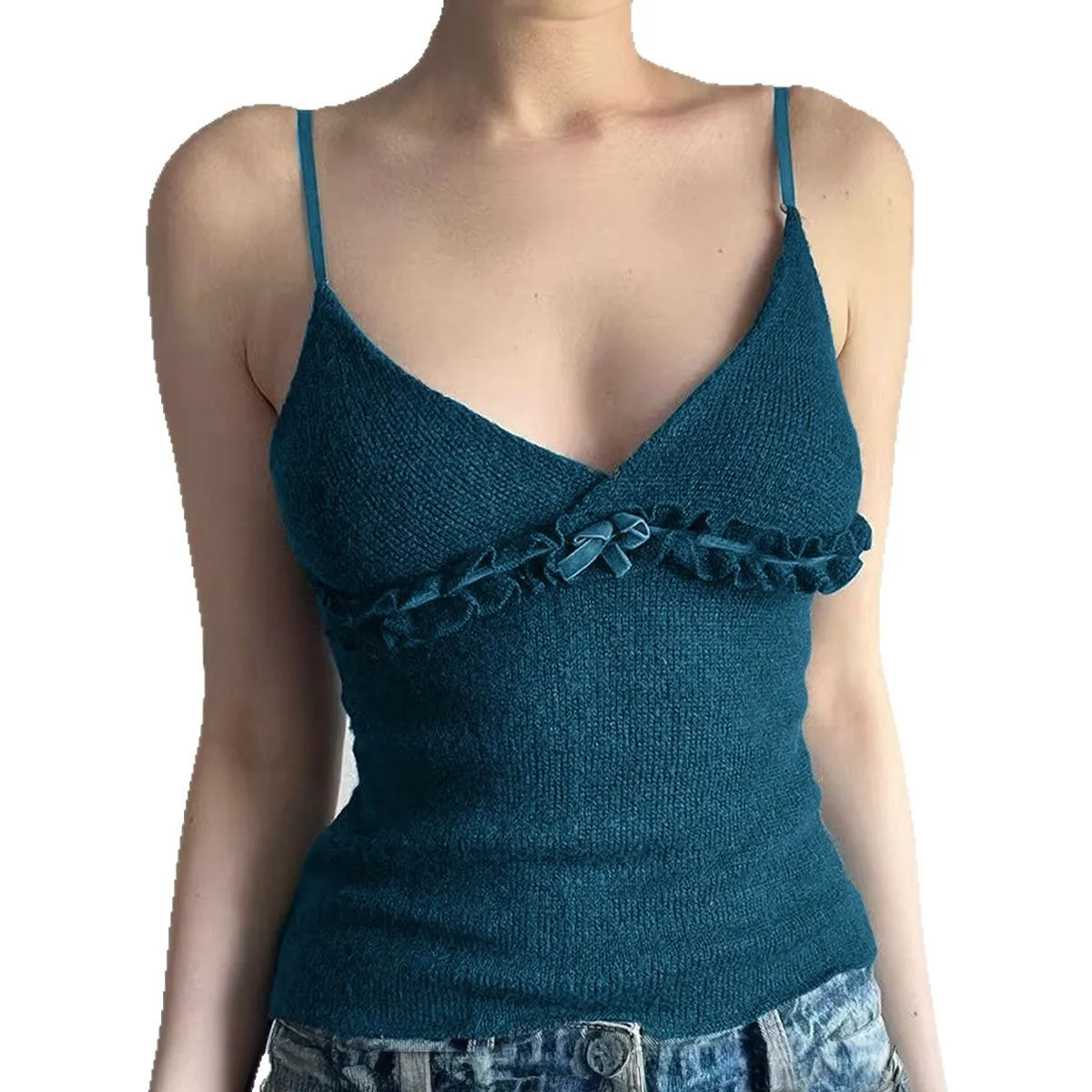 2026 Summer tank Top Y2K Camis Top Women's Solid Color Slimming Flower Knitted Strap t Shirt