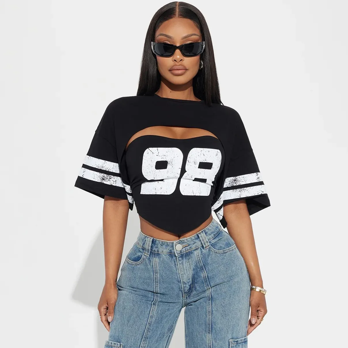 Casual Sports Women's Sports T-shirts Letter Printed Strapless Women 2 Two Piece T Shirts and Shorts Set Crop Tops