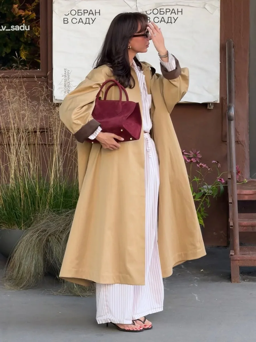 Women's Vintage Mandarin Collar Long Poncho Autumn Cotton Loose Fit Regular Sleeves No Closure