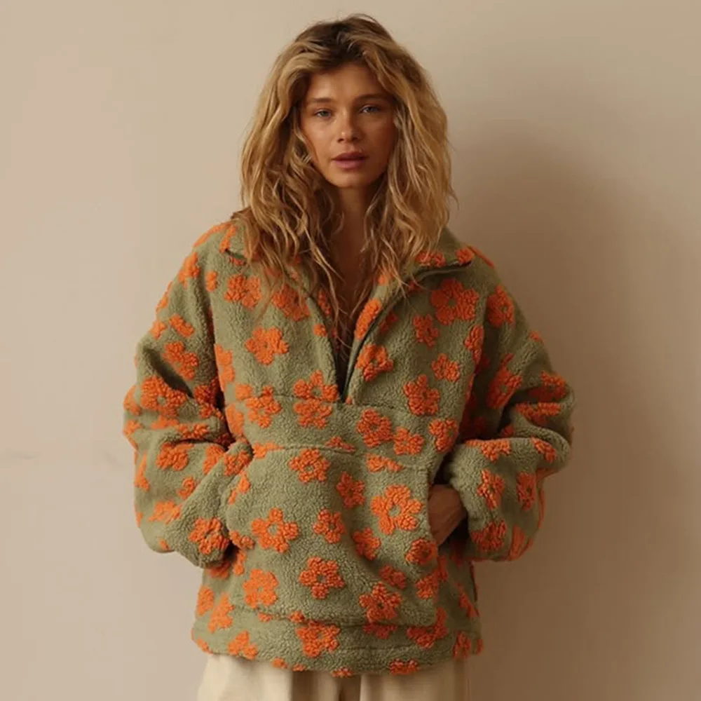 Hooded Printed Fleece Floral Anti-Pilling Sweatshirt Front Logo 420g Autumn Winter New Fashion Women's 100% Polyester