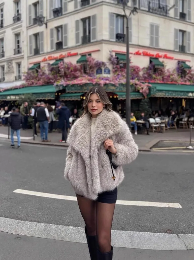 Euro-American Cross-Border Wholesale Women's Coat Autumn Winter Solid Color Faux Fur Lapel Woven Single Button Casual