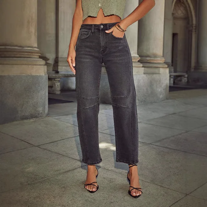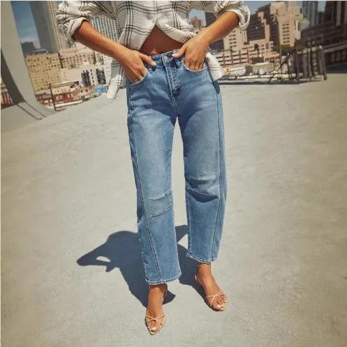 New 2026 Vintage European/American Style Regular Wide-Leg Mid-Waist Straight Quick Dry Denim/Nylon/Cotton Jeans Women