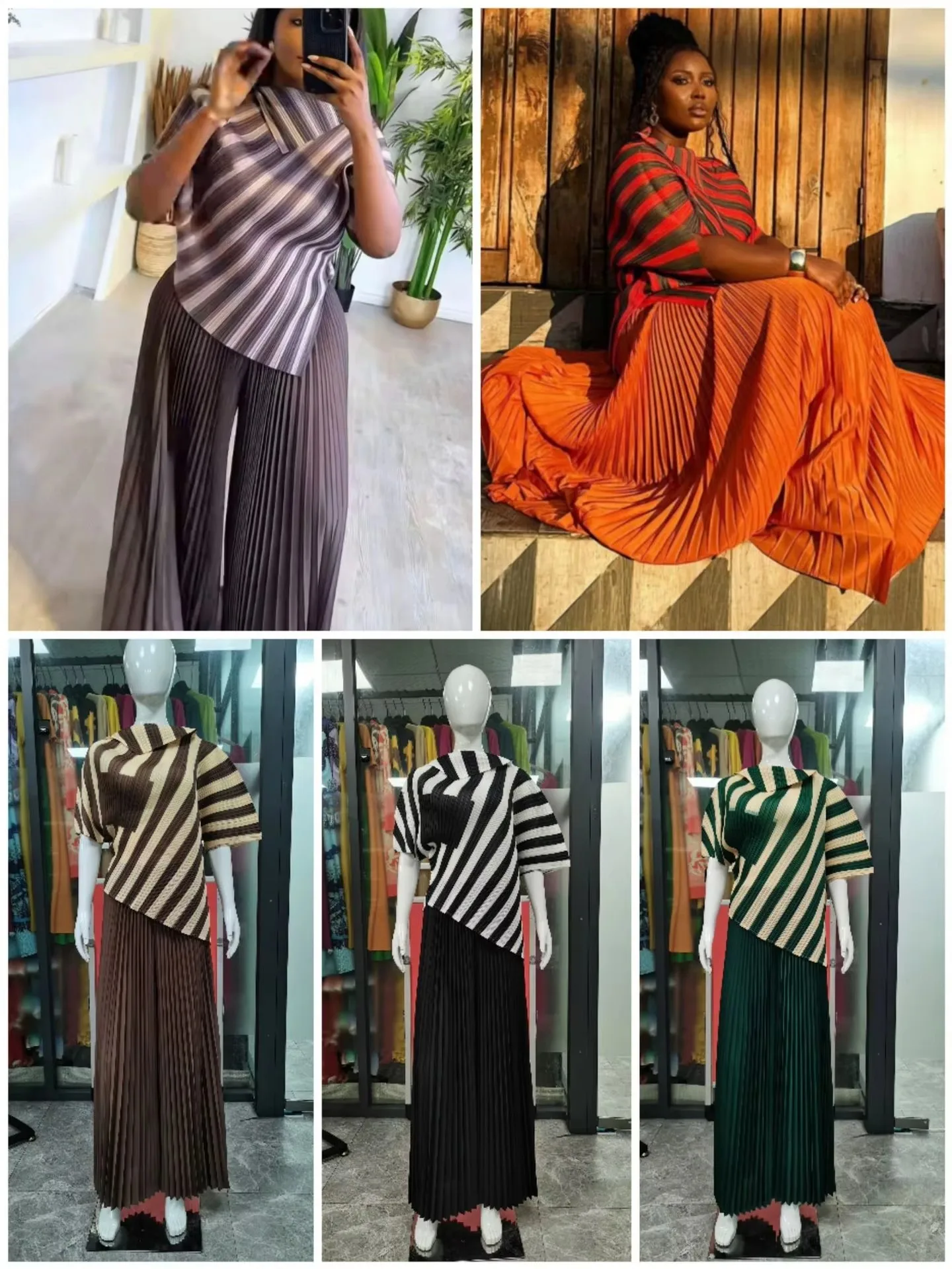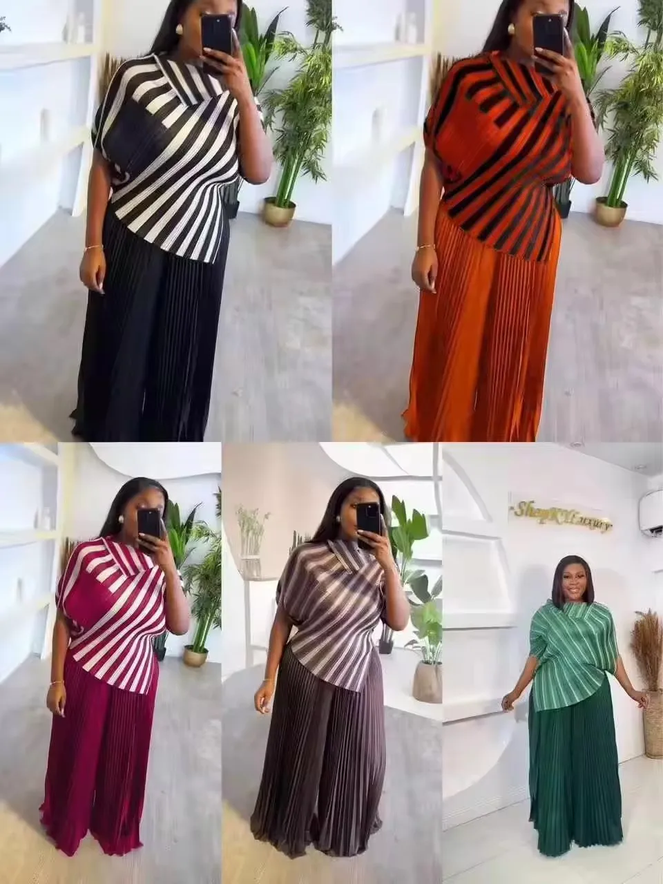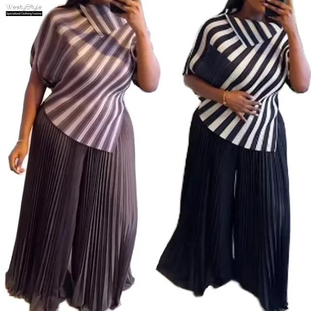 Stylish Plus-Size 2-Piece Set Striped Printed Short Top Wide-Leg Pants Loose Fit Nonwoven Weaving Method Made Comfortable Fabric