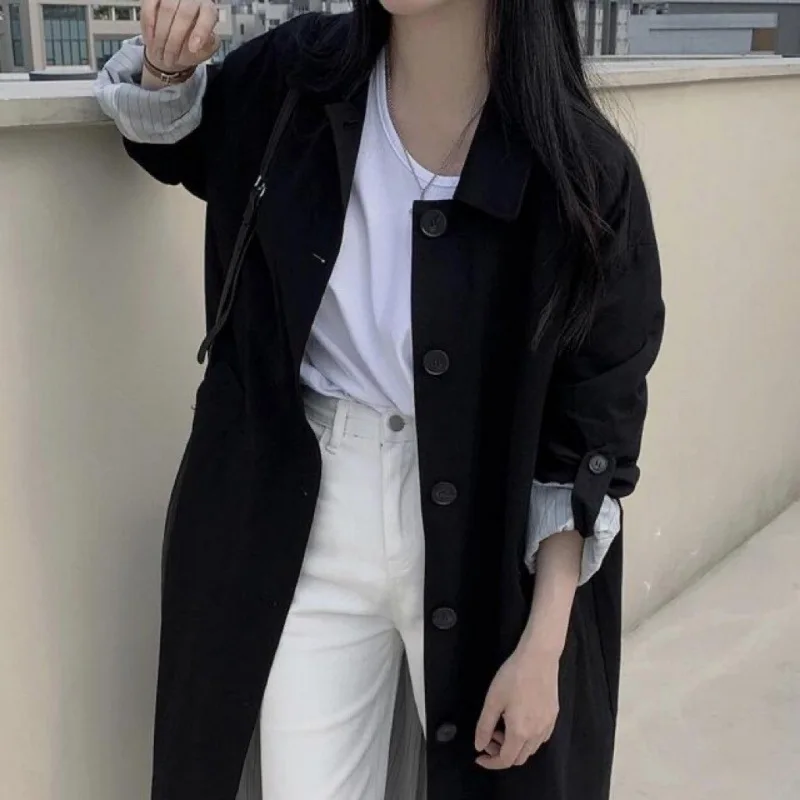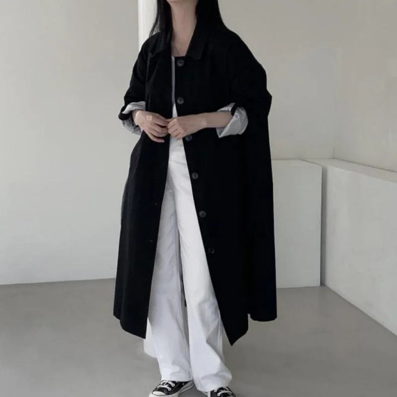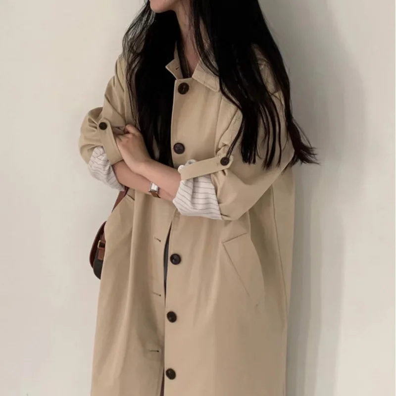 Solid Color Elegant Long Over-The-Knee Woolen Coat Women Single-Breasted Plus Size Winter Thick Cotton Filled Polyester