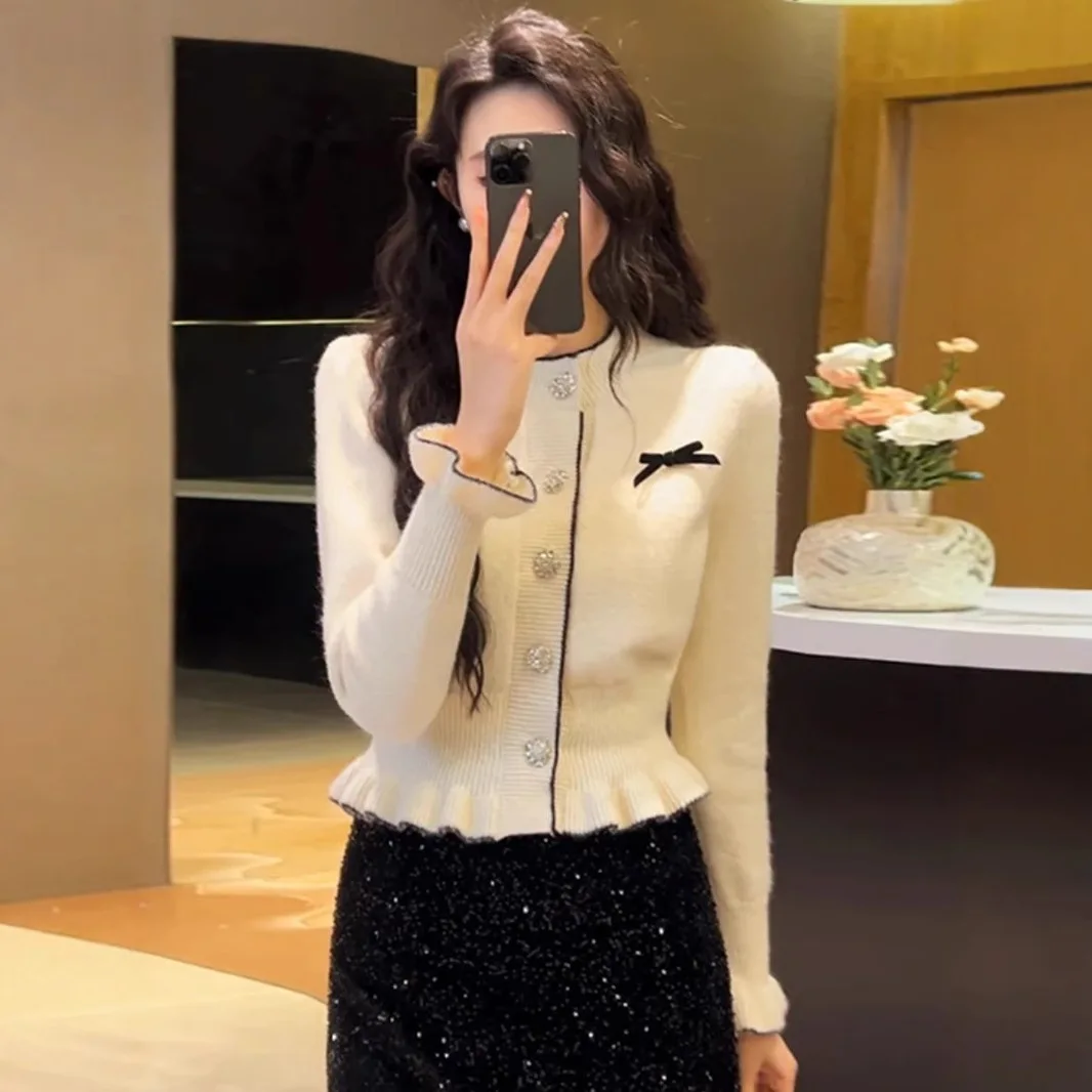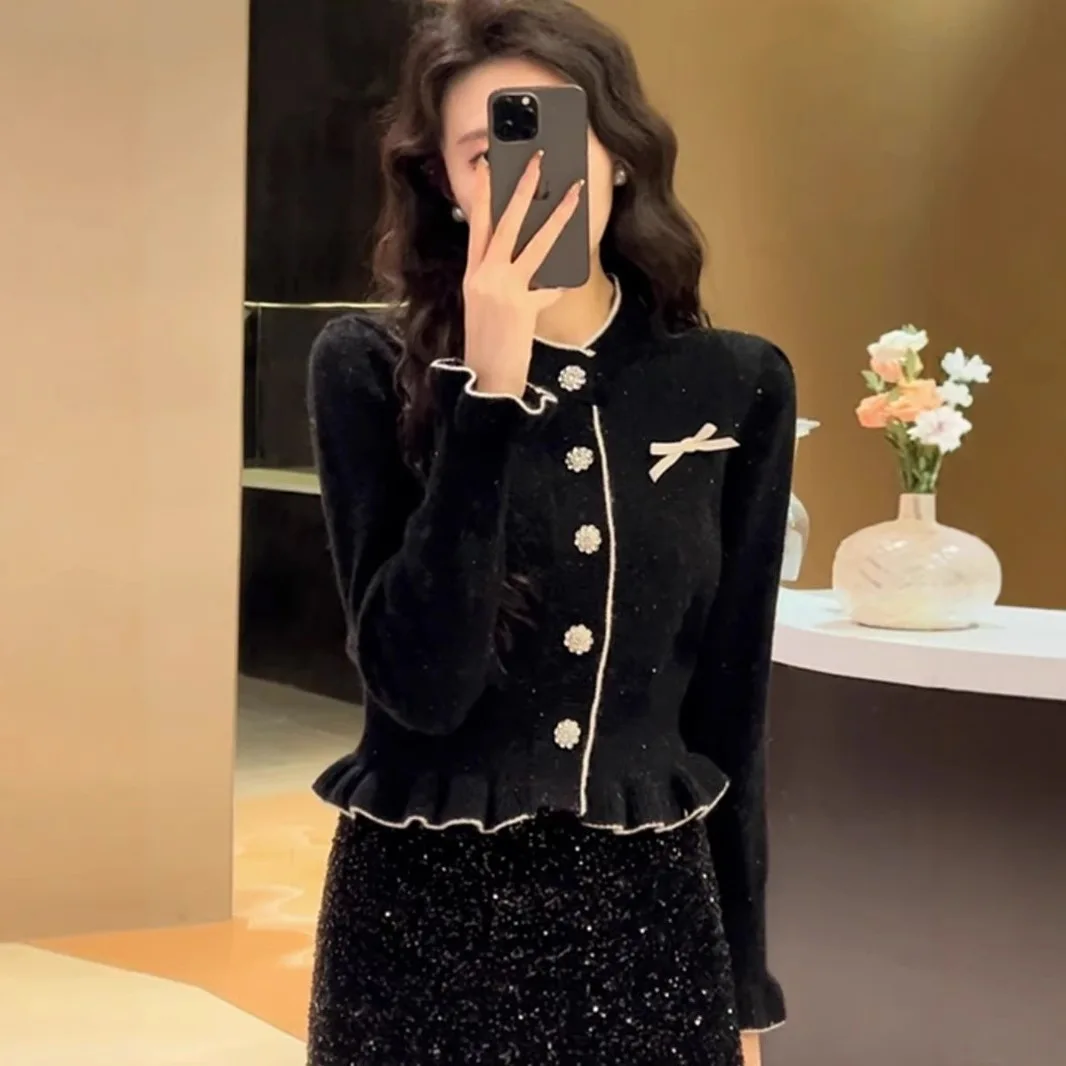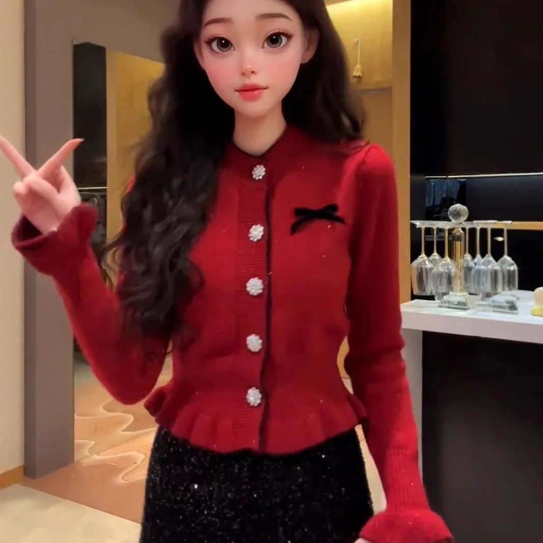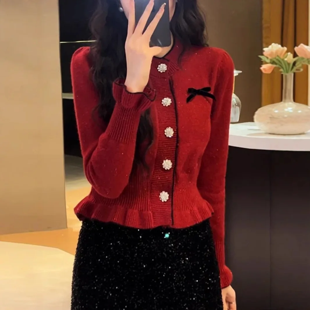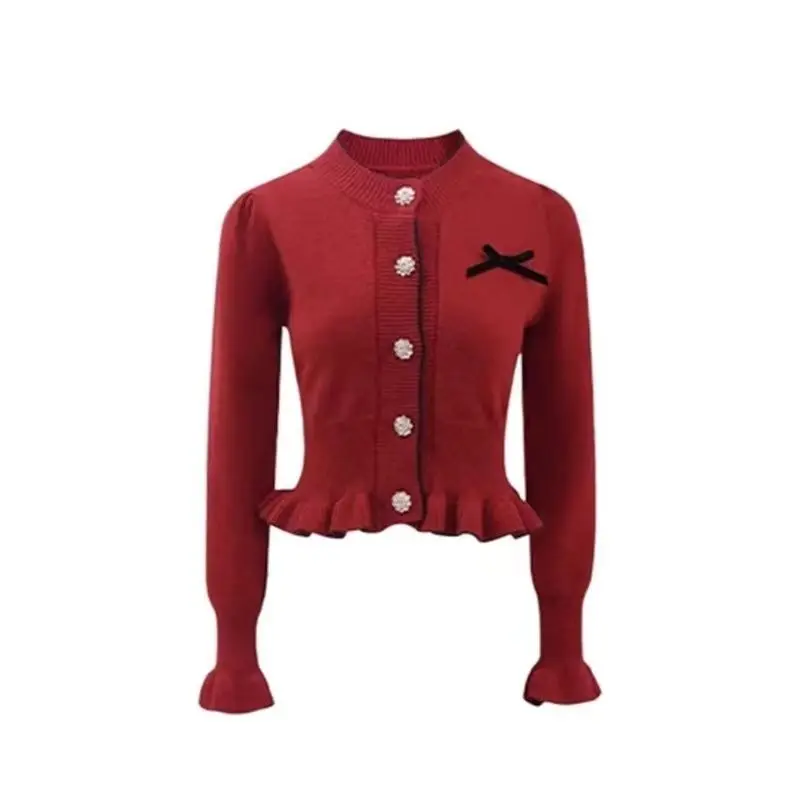 Red Mohair Sweater Coat Unisex Autumn Winter New Explosions Fashion Stylish Full Sleeve Knitted Halter Lace Floral Cardigan Top