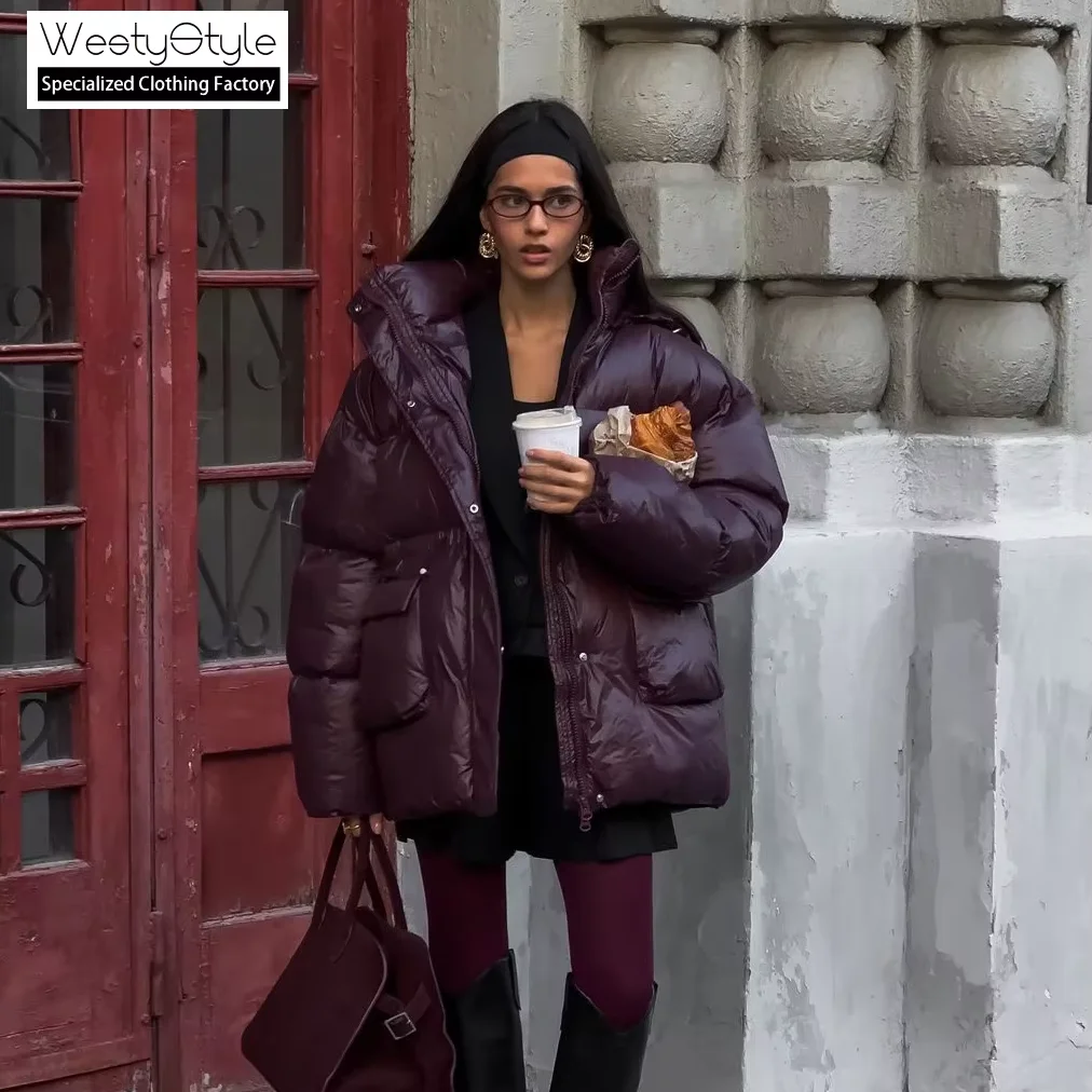 Best Sale Women's Eco-Friendly Woven Cotton Filled Hooded Button Thick Casual Winter Plain Oversized Down Coats
