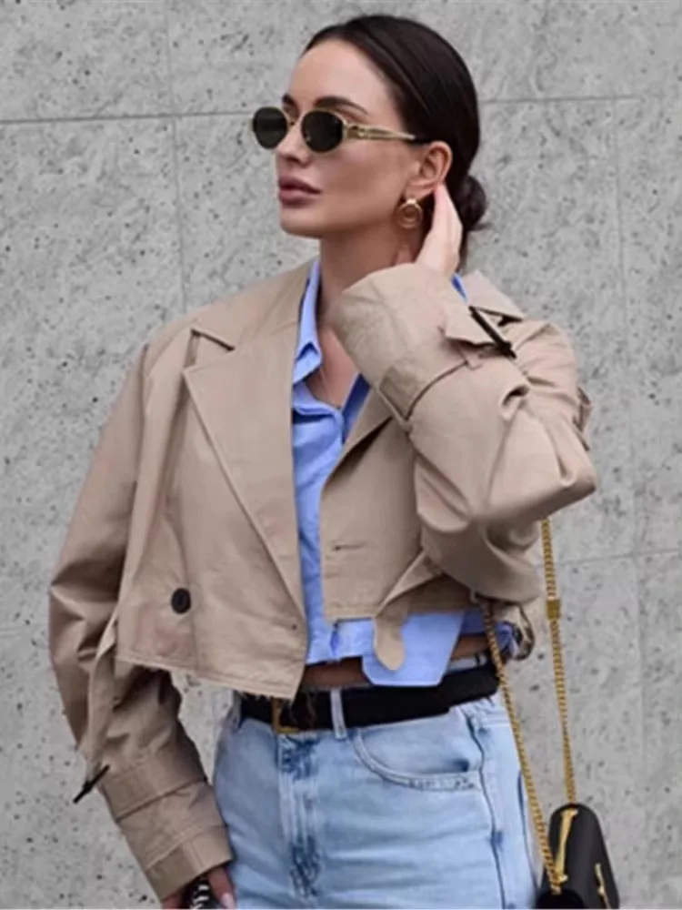 European American Style Women's Short Long Sleeve Solid Color Eco-Friendly Button Knitted Worsted Fabric Turn-down Collar Autumn