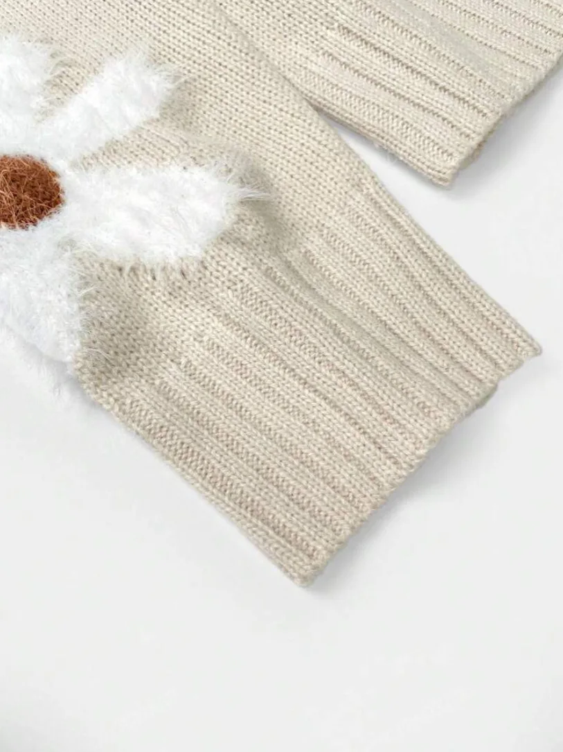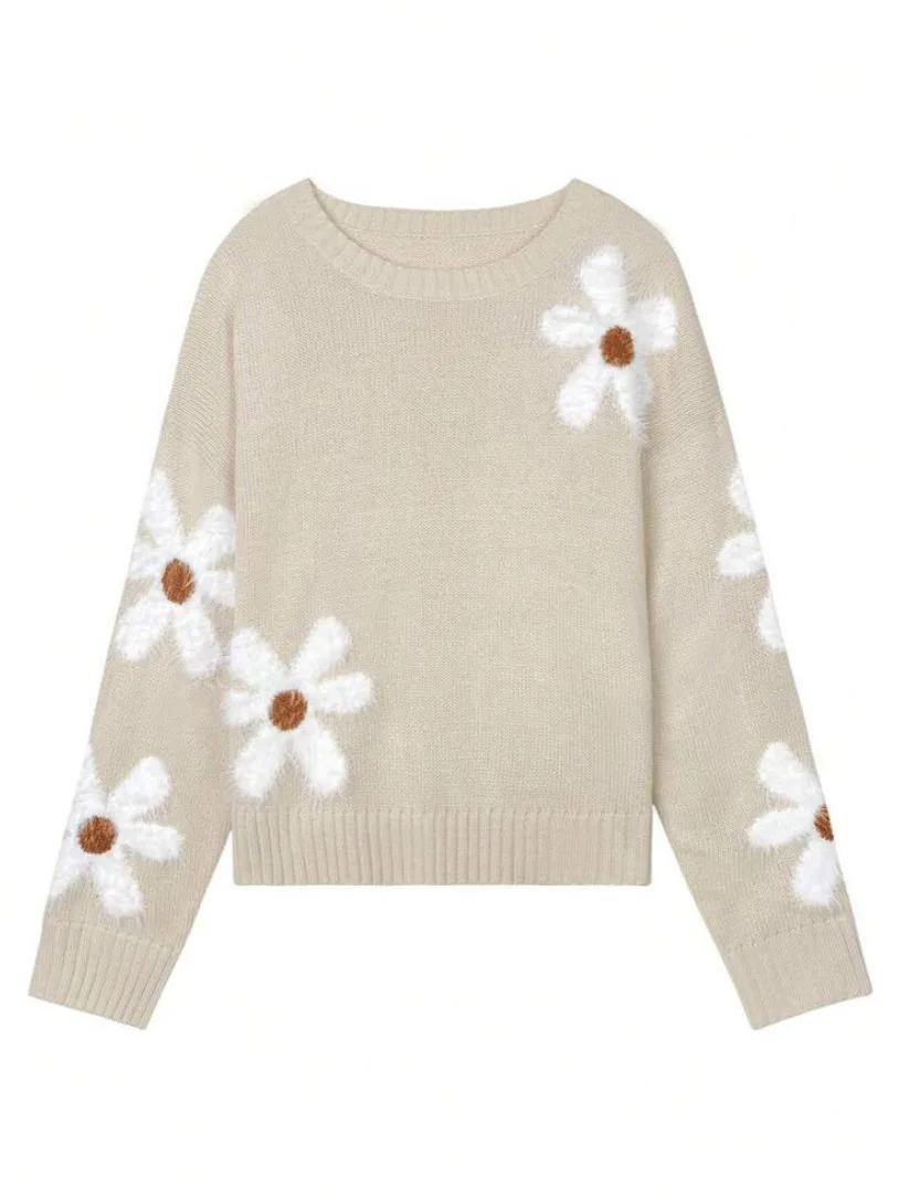 For Korean Crewneck Long Sleeve Acrylic Breathable Flower Jacquard Pullover Sweater Medium Length Standard Thickness Women