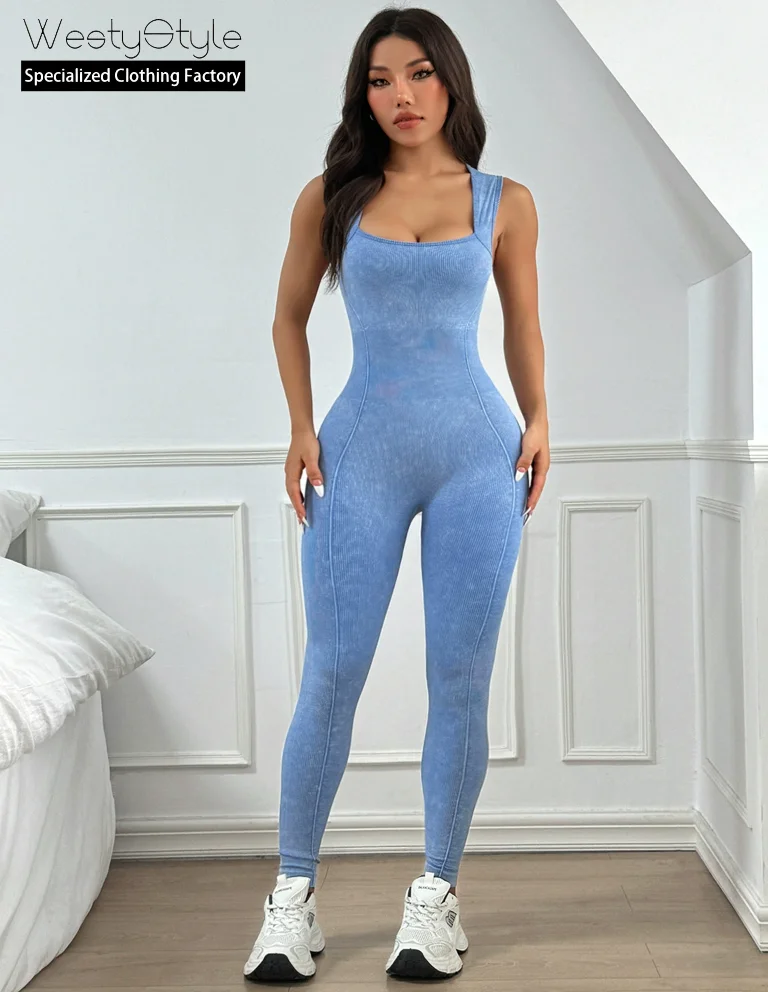 High Quality Lightweight Breathable Women's Square Shaped Neck Flared Pants Jumpsuits Active Stretch New Arrival Custom Sports