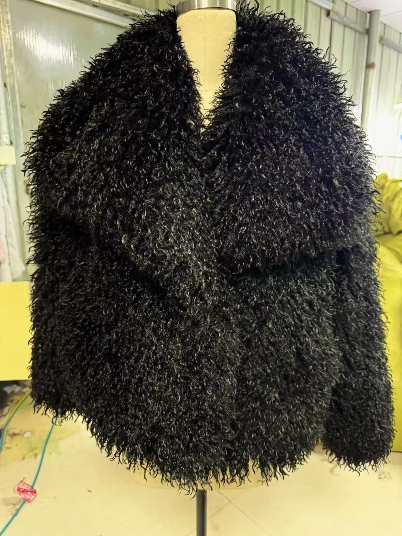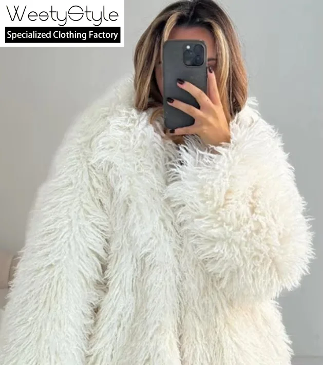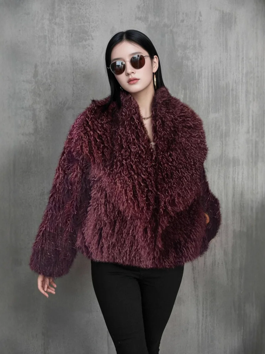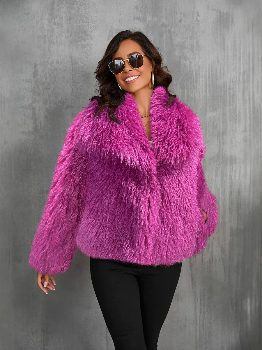 European and American Woven Sheep Fur Long Button Lapel Fashion Fluffy Plush Winter Trench Coat for Women