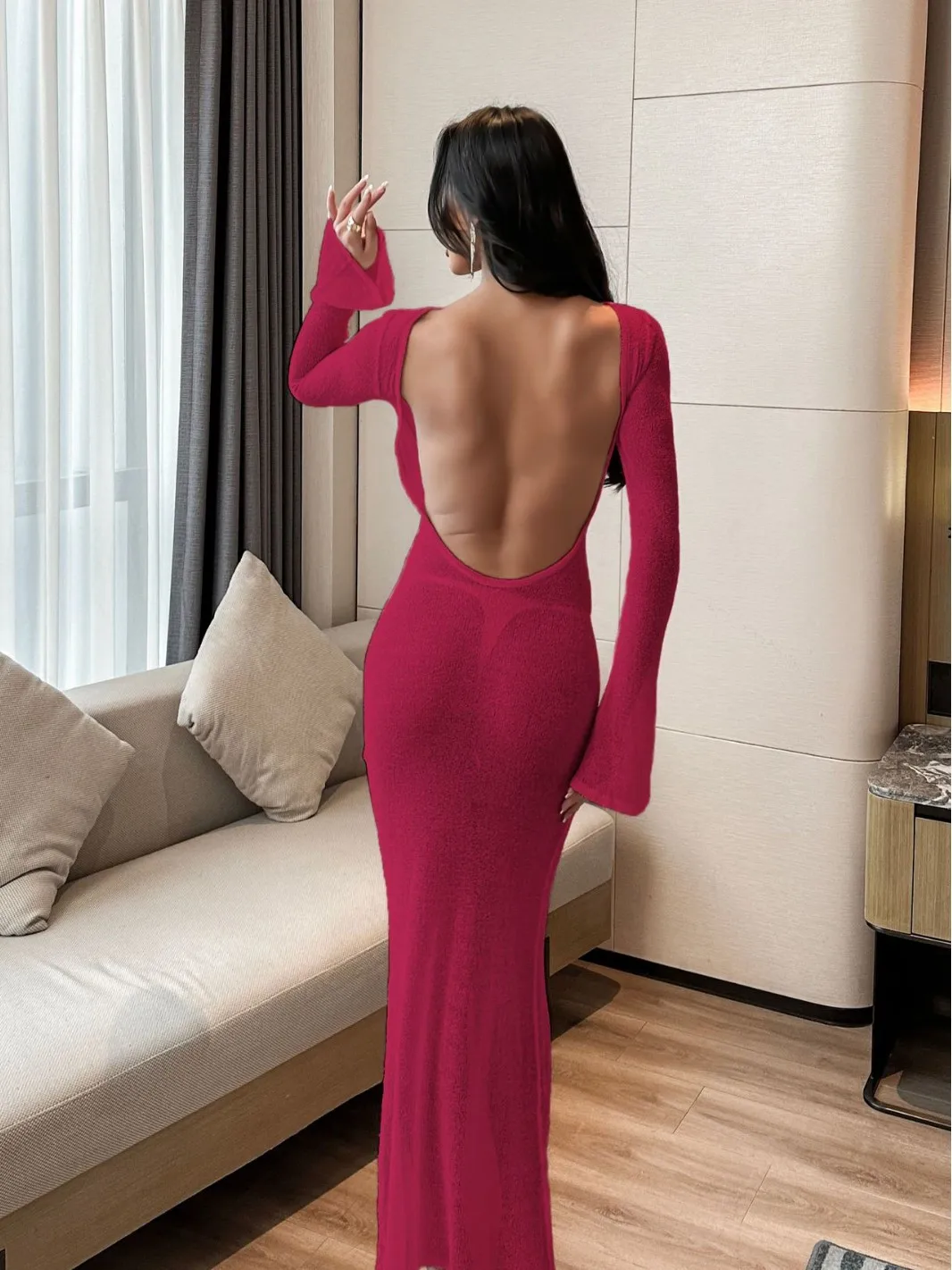 WestyStyle New Women's European American Style One-Piece Beach Summer Dress Solid Pattern Long Sleeves Sexy Backless Skirt Logo