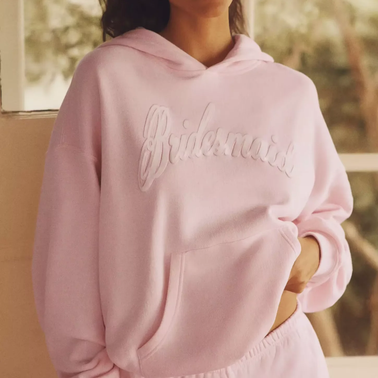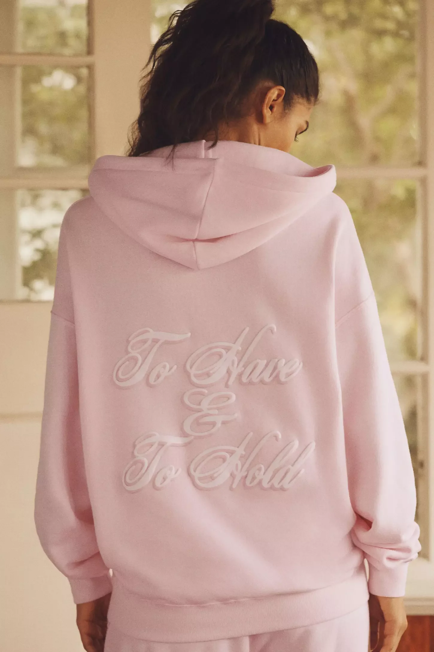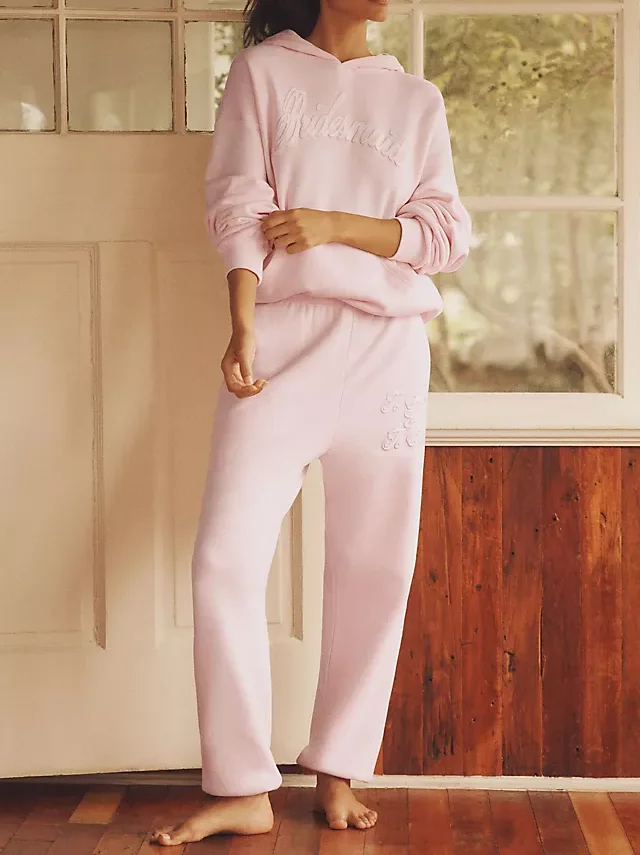 Custom Logo Women's 3D Embroidered Tracksuit 100% Cotton Elastic Waist Full Length Winter Hooded Embossing Printing Hoodies Set