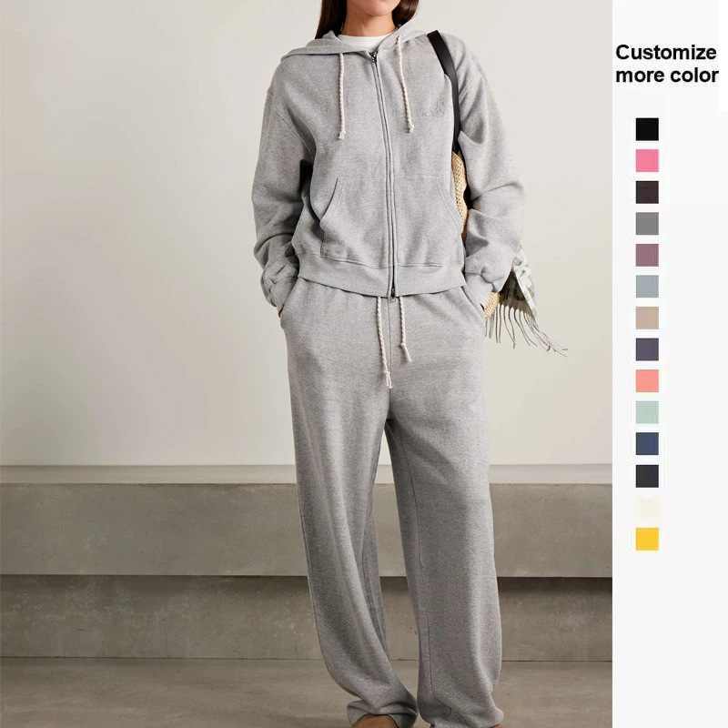 Custom Plus Size Women's Sports Wear Track Suit Jogger Sweatpants and Hooded Sweatshirt 2-Piece Shorts Set