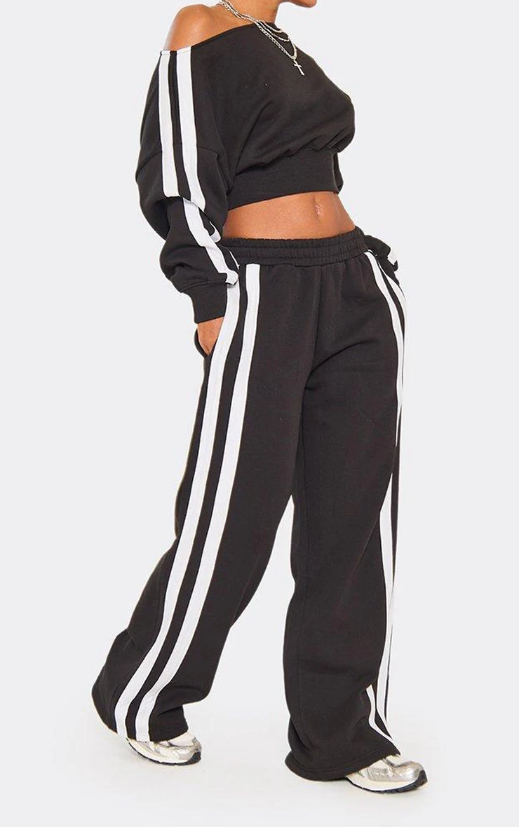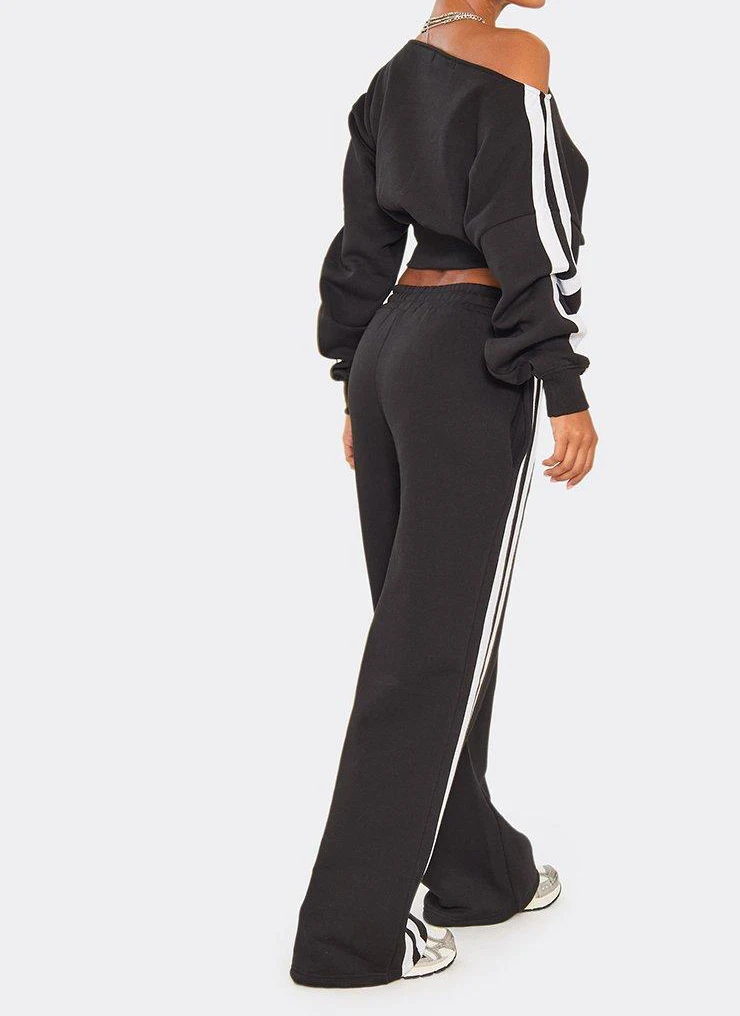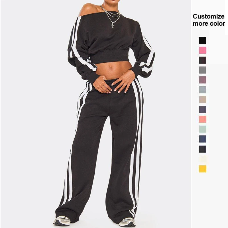 Custom Apparel Fashion Striped Women's Set Long Sleeve Sweatshirt and Sweat Pants Tracksuit 2026 Winter Two 2 Piece Set