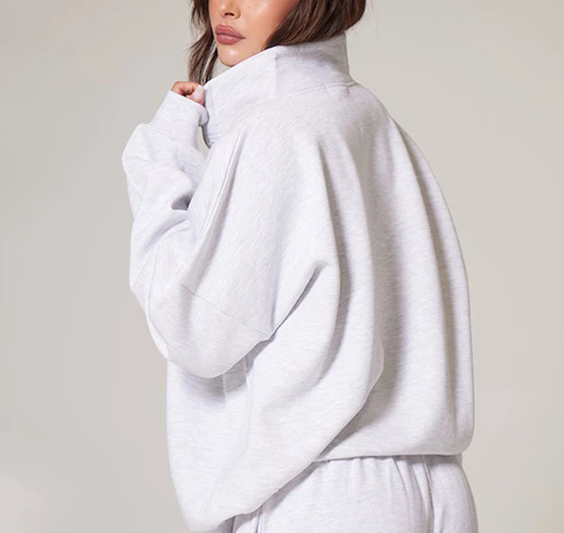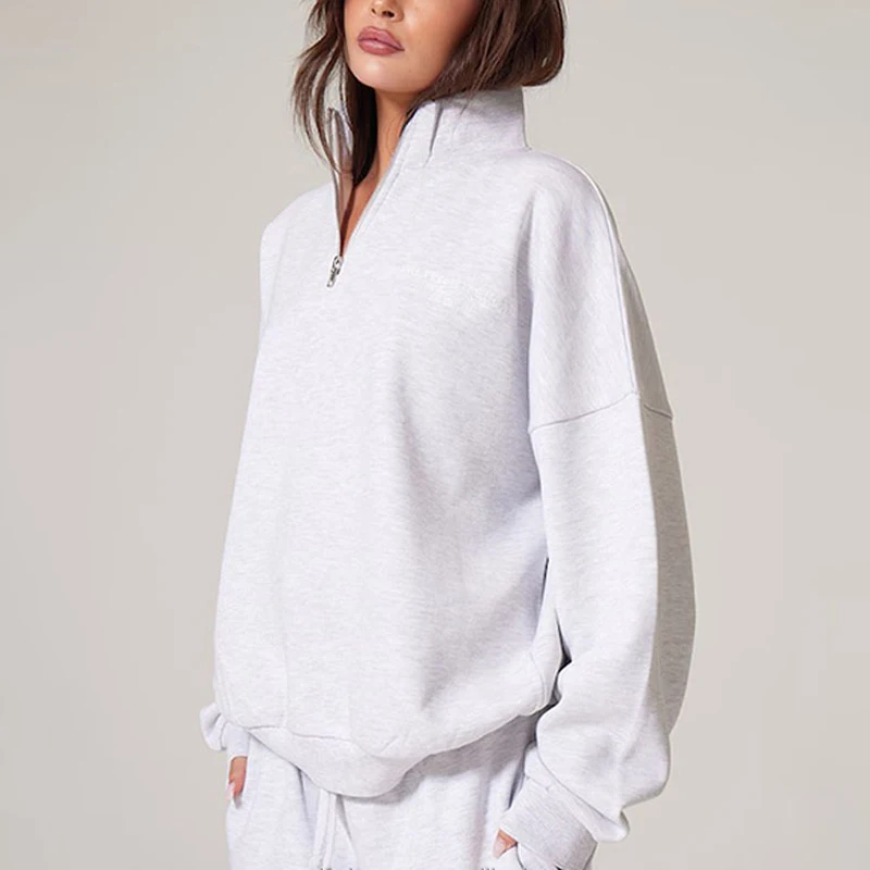 Custom Logo High Quality Quarter Zip Soft Fleece Plain Sport Jumpers Drop Shoulder High Neck Pullover Oversized Women Sweatshirt