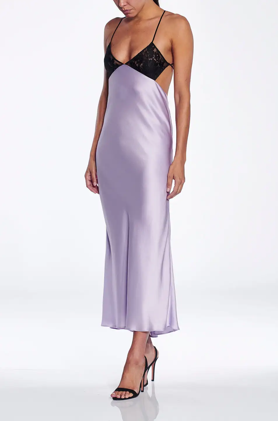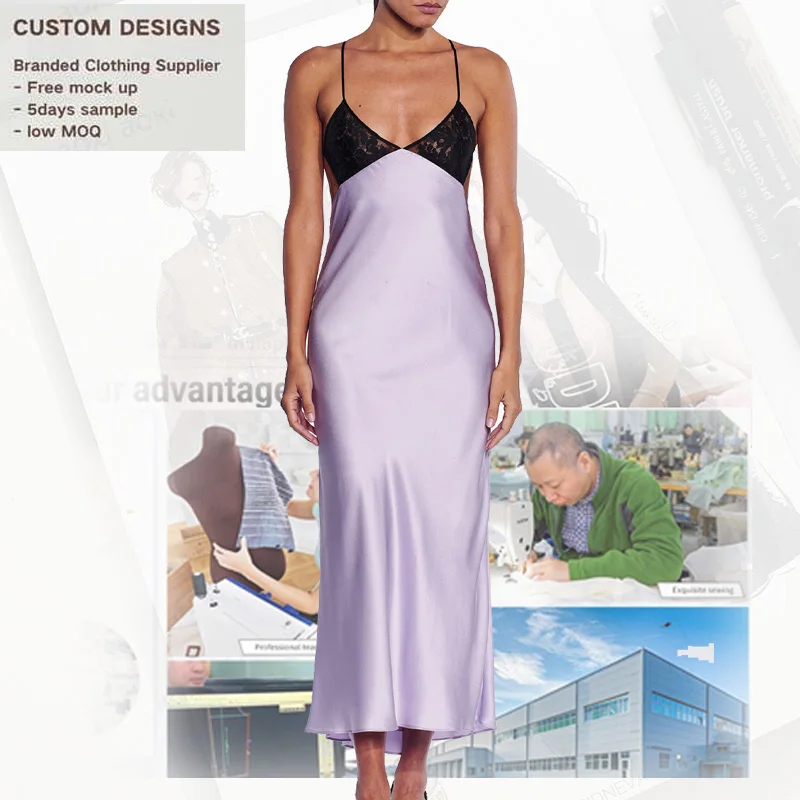 Custom OEM Women Clothes Casual Cross-Back Sexy V Neck Lace Dress Spaghetti Strap Stain Dress