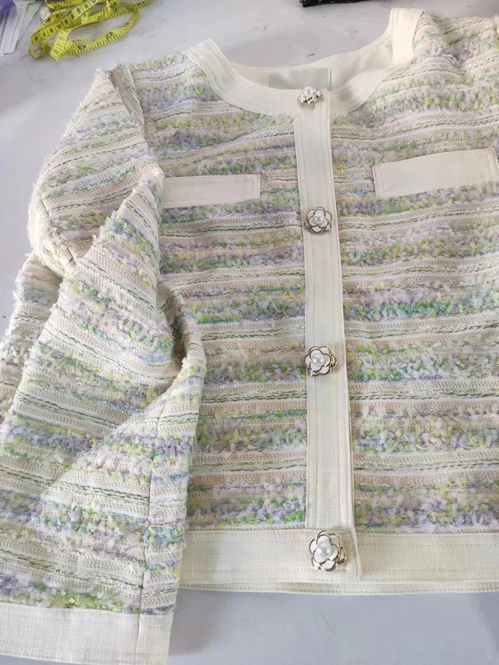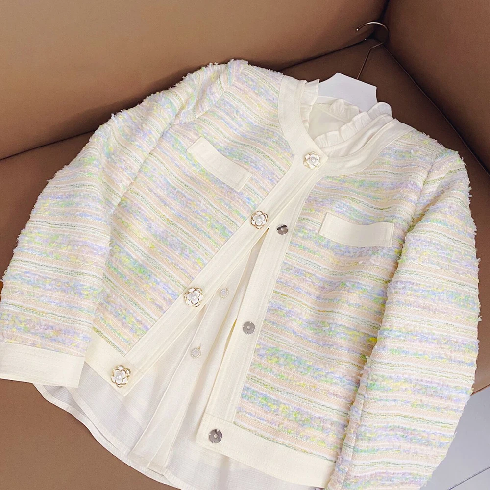 Modest Tweed Blazer Open Front Collarless Chaquetas De Mujer Elegant Coat Casual Cropped Jacket for Women