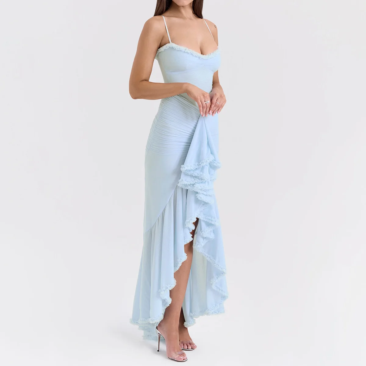 2026 Sexy Sleeveless Backless Slim Robes Women Elegant Irregular Ruffles Hem Lady Evening Party Pleated Sling Maxi Dress