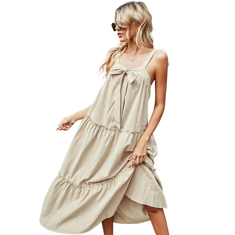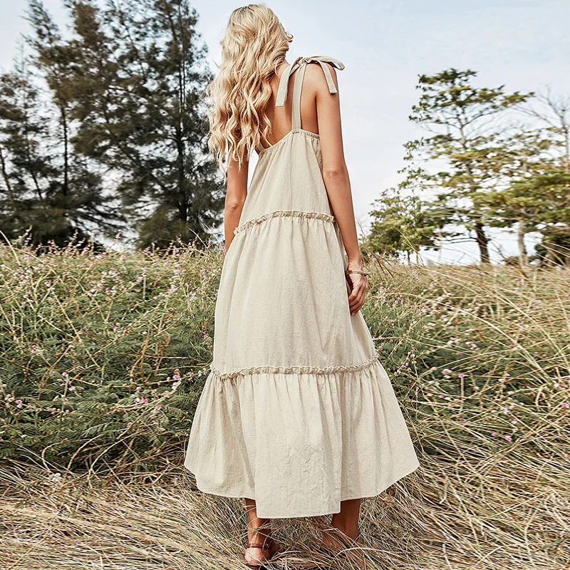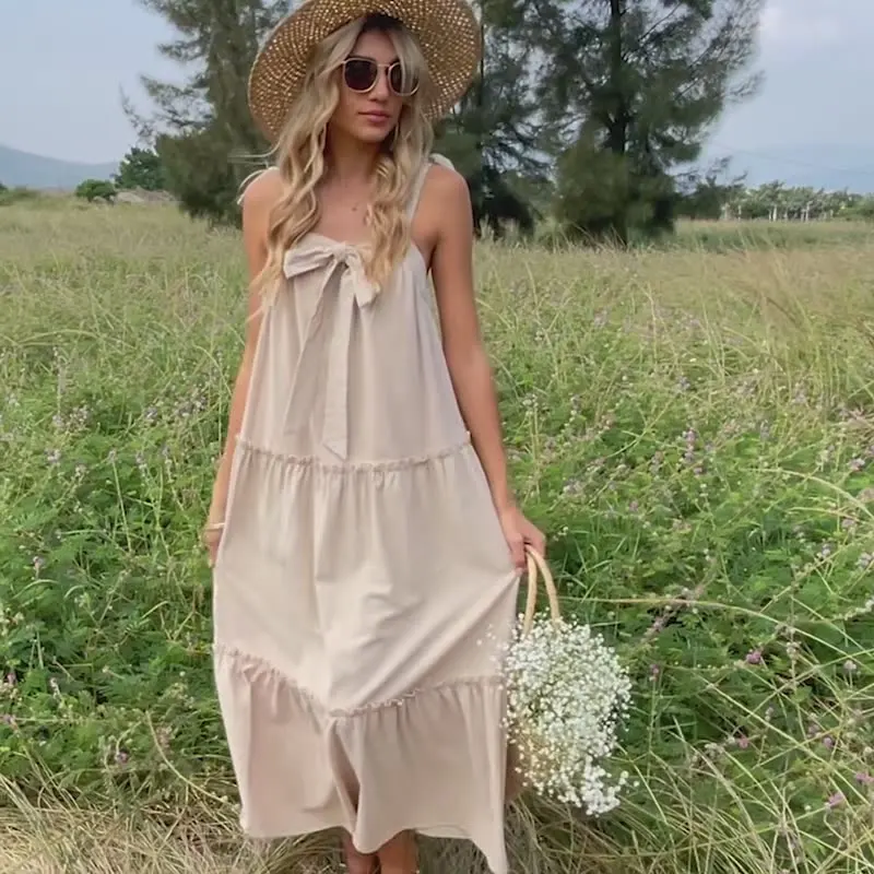 Custom Women's Wholesale Latest Designs Summer Girls Beach Dress Long Flowy Cotton Casual Dress