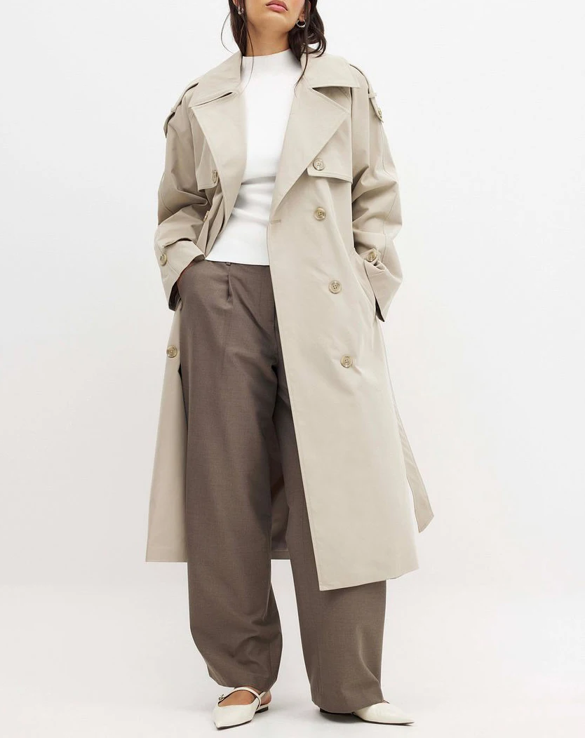 Women's Double Breasted Trench Coat Casual Standard Commuting Wear High Quality Spring Long Trench Coat for Women