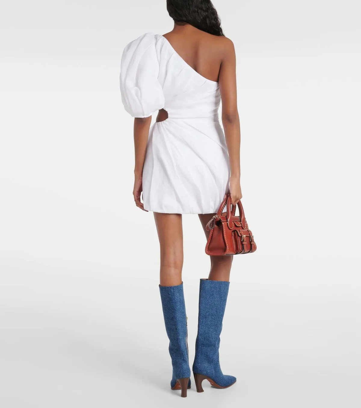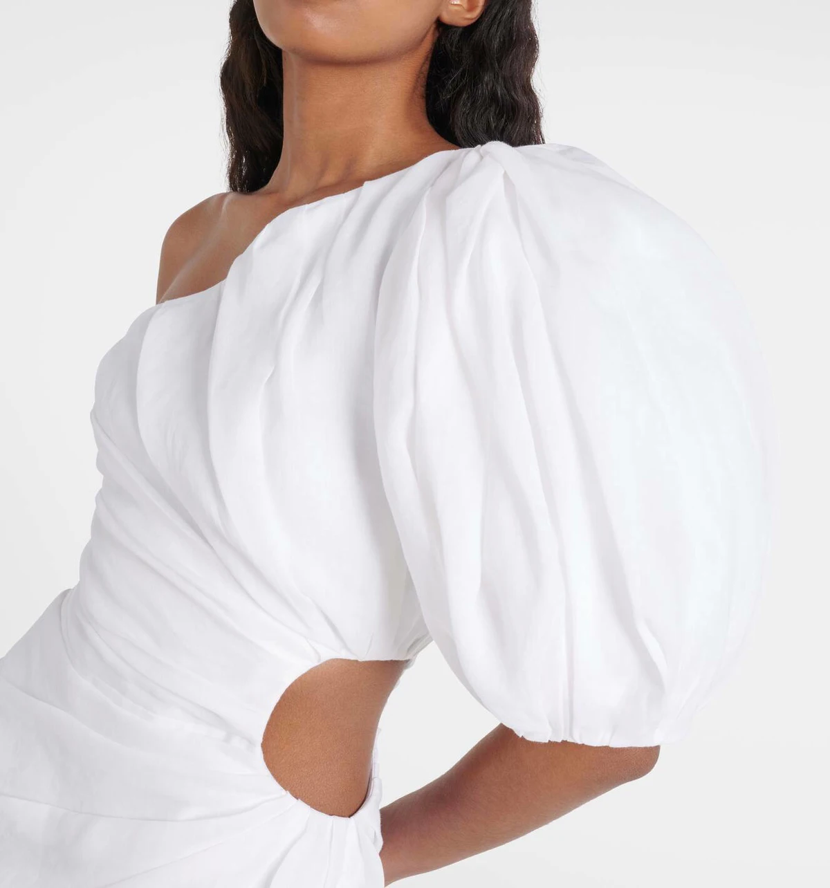 Modern Style Women's One Shoulder Evening Party Dress with Puffy Sleeve Sexy Hollow-out Mini Dress