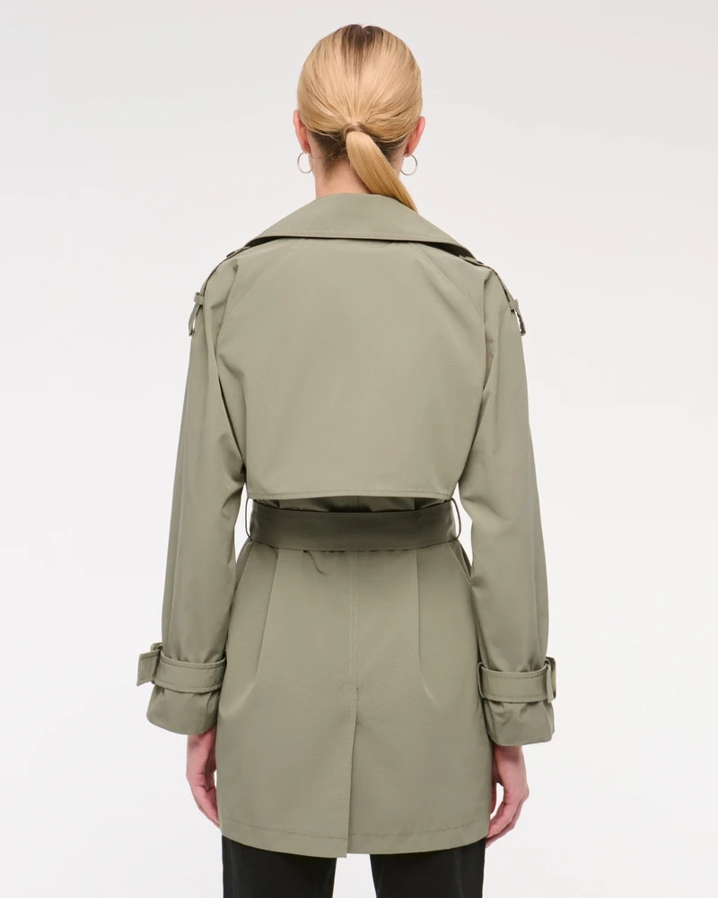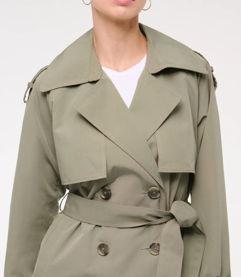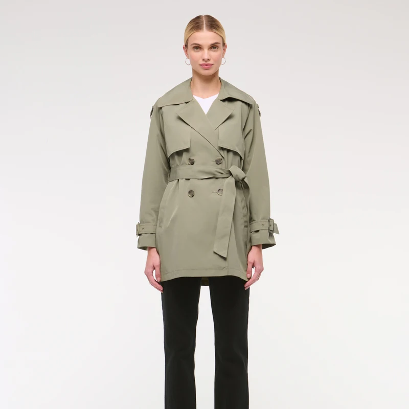 Women's Customized Fashion New Light Green Lapel Long Sleeve Tie Short Belt Jacket Windbreaker Trench Coat