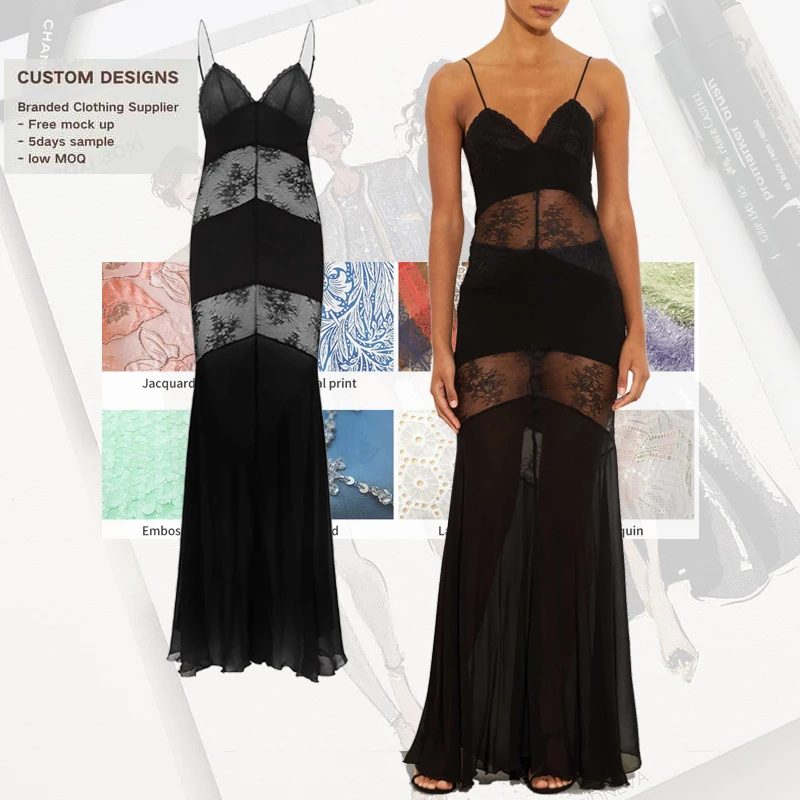 Vintage Elegant Lace Halter Dresses for Ladies Slim V-neck Backless Evening Long Robe Empire Waistline Spring Summer Slip Dress