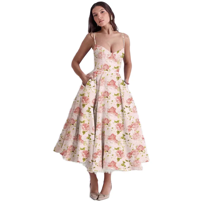2026 Summer High-End Women's Casual Dress Double-Layer French Mesh Digital Printing Princess Maxi Dress
