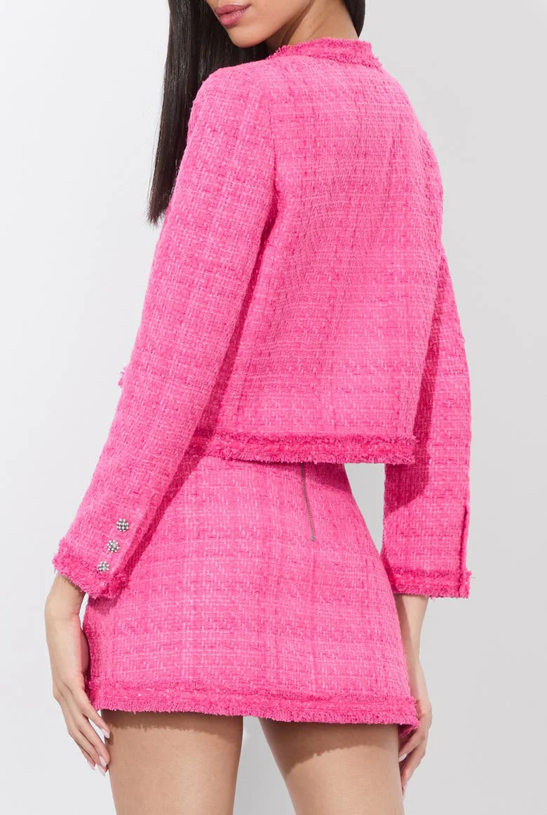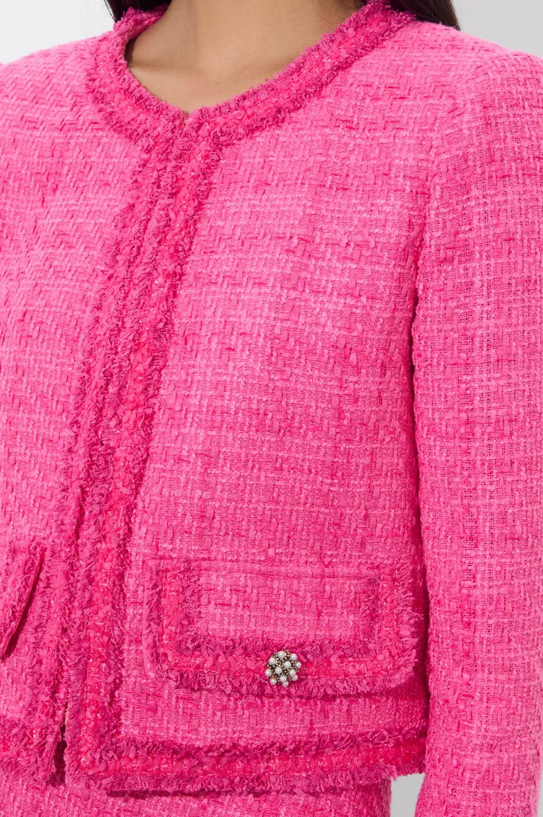 Clothing Manufacturers Custom Designer Women's Winter Fashionable Tweed Collarless Long Sleeve Crop Tweed Jacket