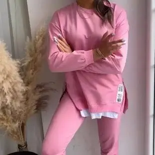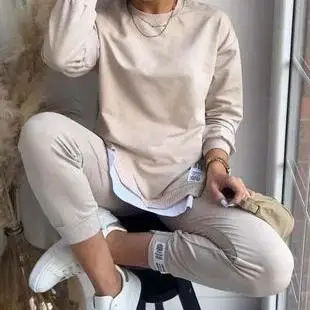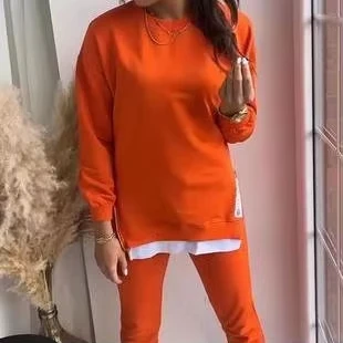European American Fall/Winter Women's Sports Pants Sweatshirt Set Independent Station's Double-Side Zipper Straight-Leg
