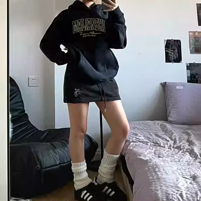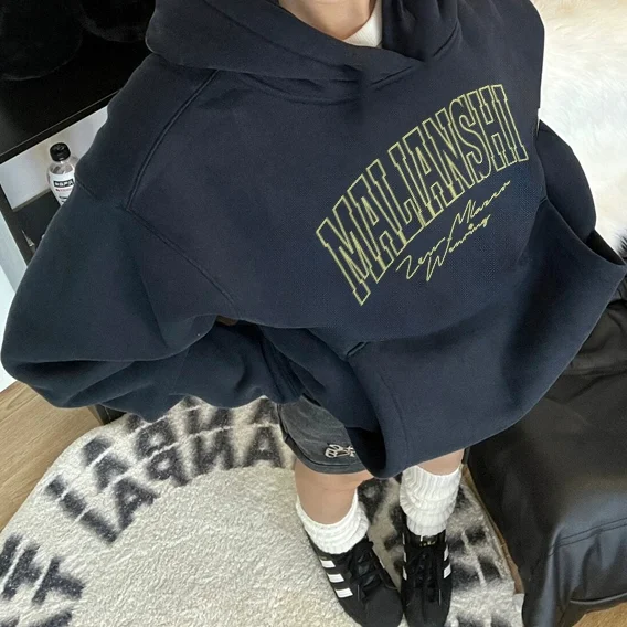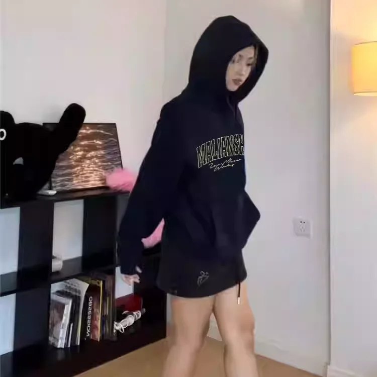 Pure Cotton American Retro Letter Hooded Sweatshirt for Women 2026 New Design Sense Niche Loose Trendy Brand Thin Jacket