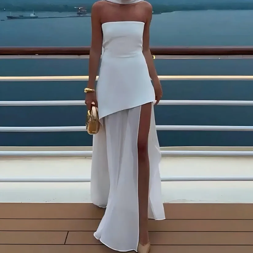 ZYHT 73849 European Wholesale Fashion Casual One Shoulder Ruched Maxi Dress Side Slit Pleated Long Sleeve Dresses for Women