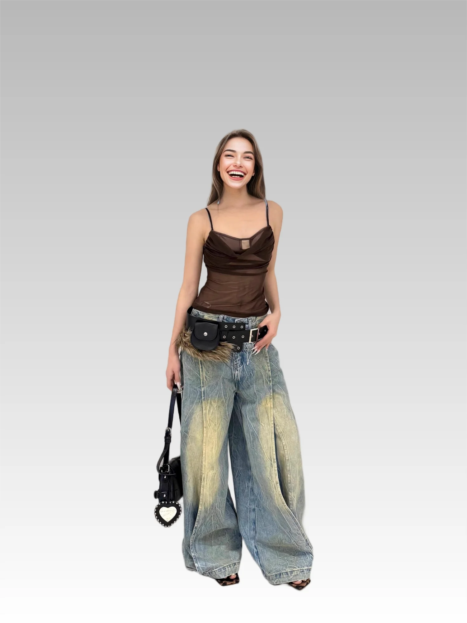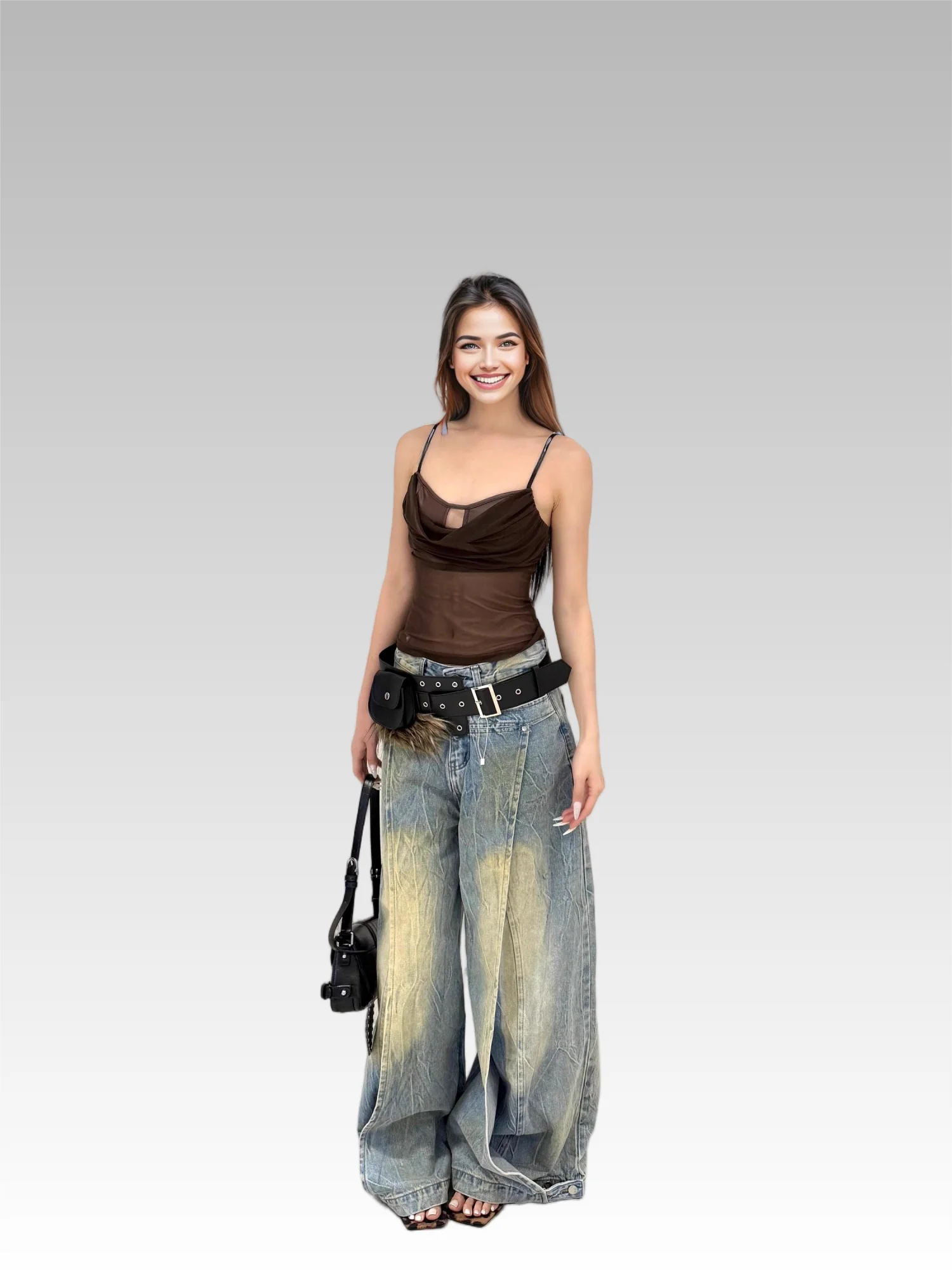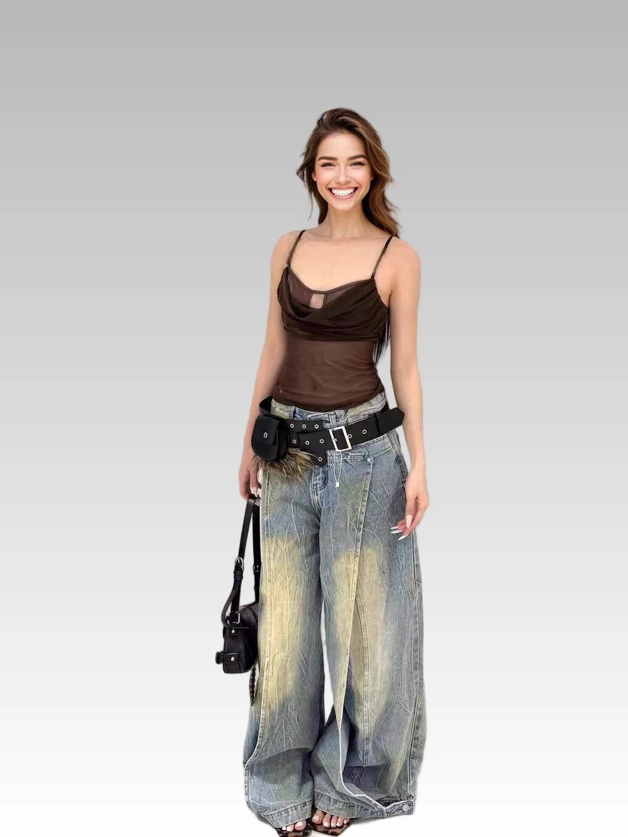 2026 Vintage Fashion Mid-Waist Special Dark Washed Loose Vintage Jeans Wide Leg Pants Logo for Autumn/Winter