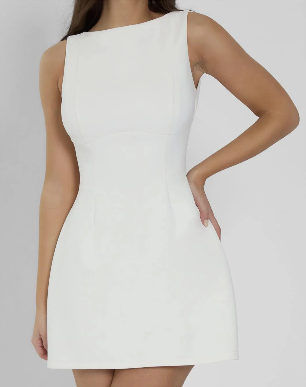 Custom Short Mini Dress Backless a Line Sleeveless White Dress for Women
