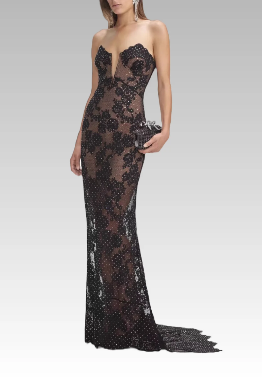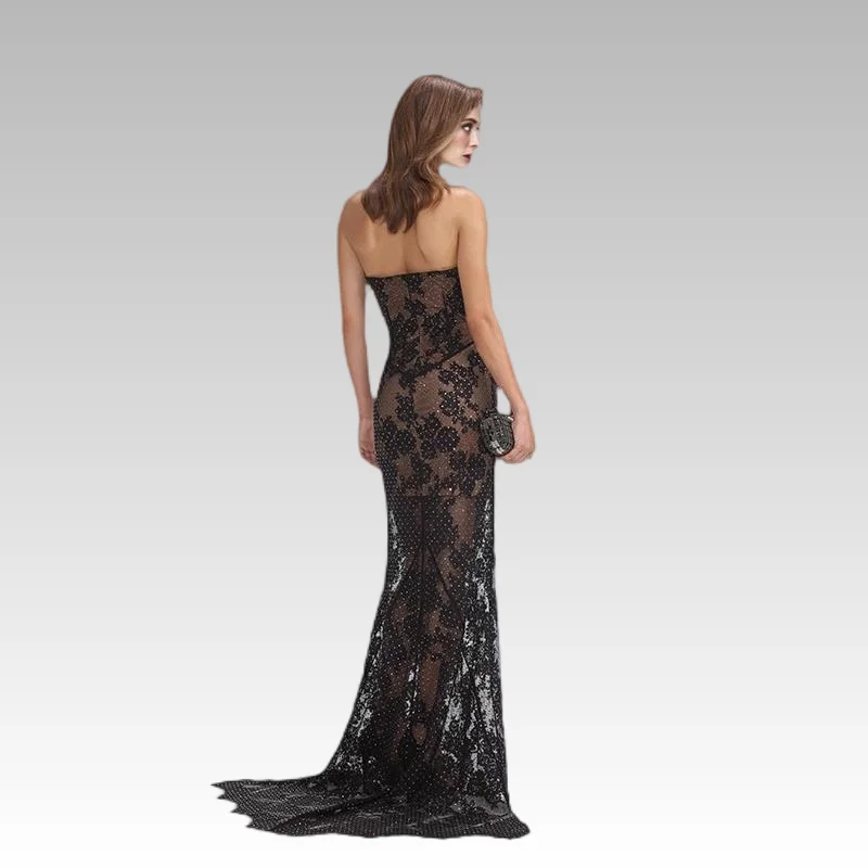 2026F/W Luxury Women's Chiffon Tube Wrap Dress V-Neck Hot Rhinestones Anti-Static Fishtail Long Style Dropped Beading Crystal