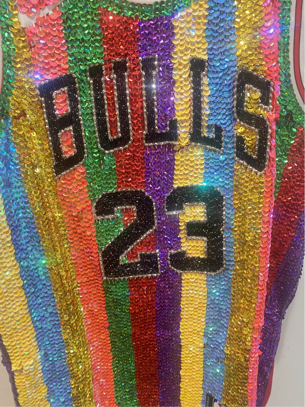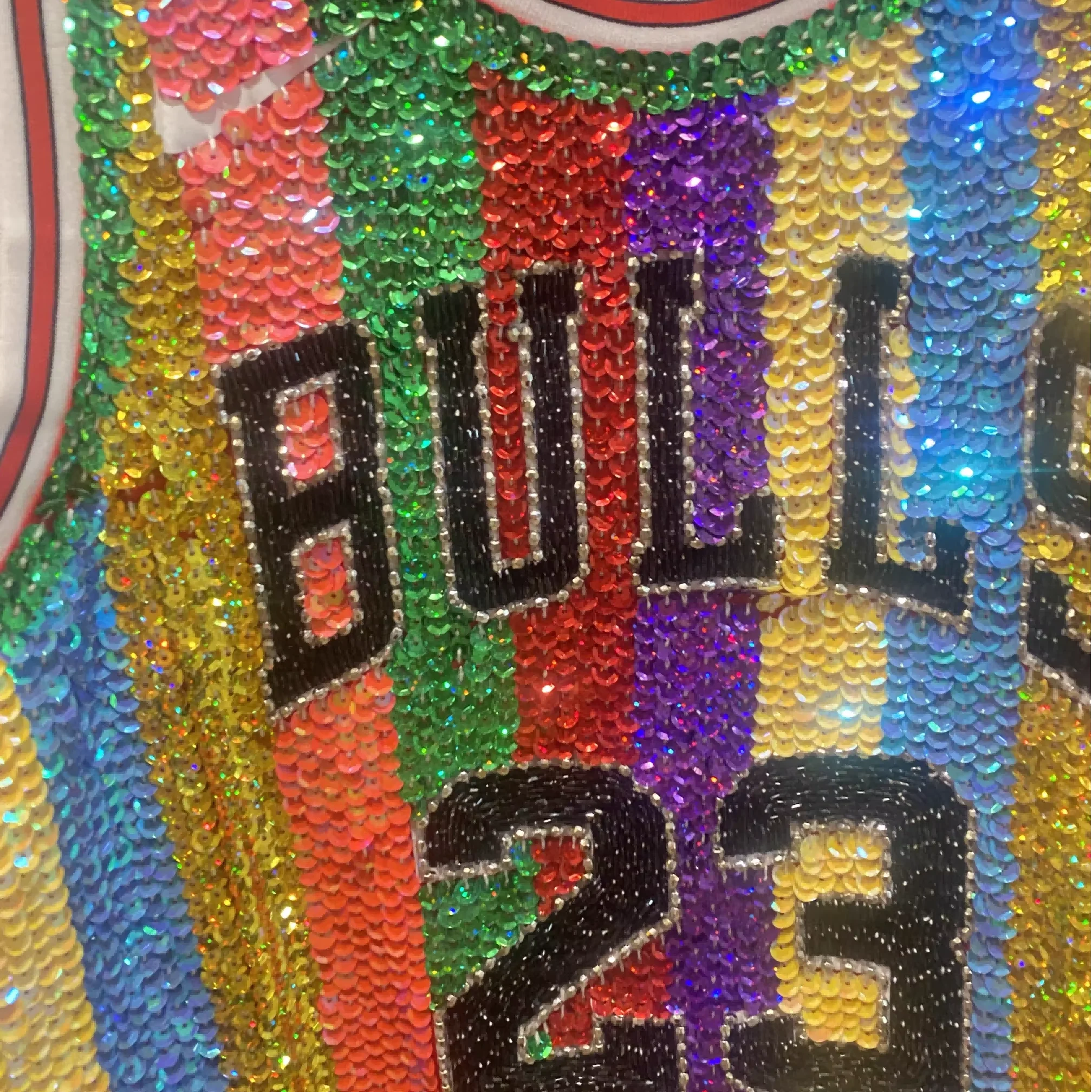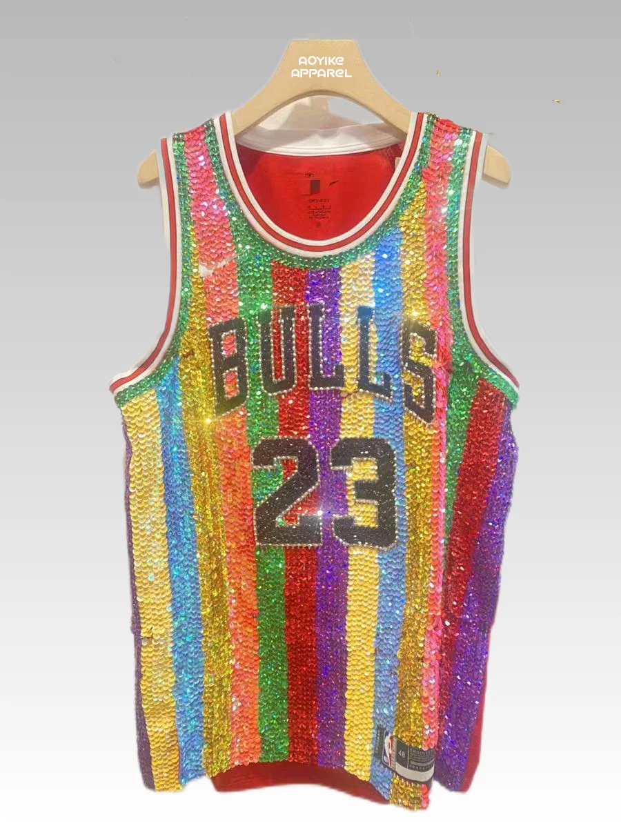 2026S/F Luxury Sequin Vest Top Trend Heavy American Jersey Hand-Sewn Beaded Rainbow Striped for Men Women Customized Plus Size