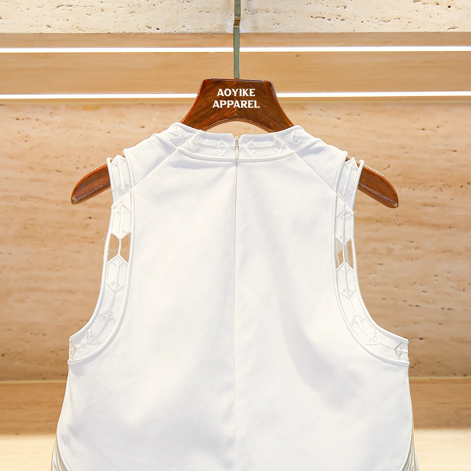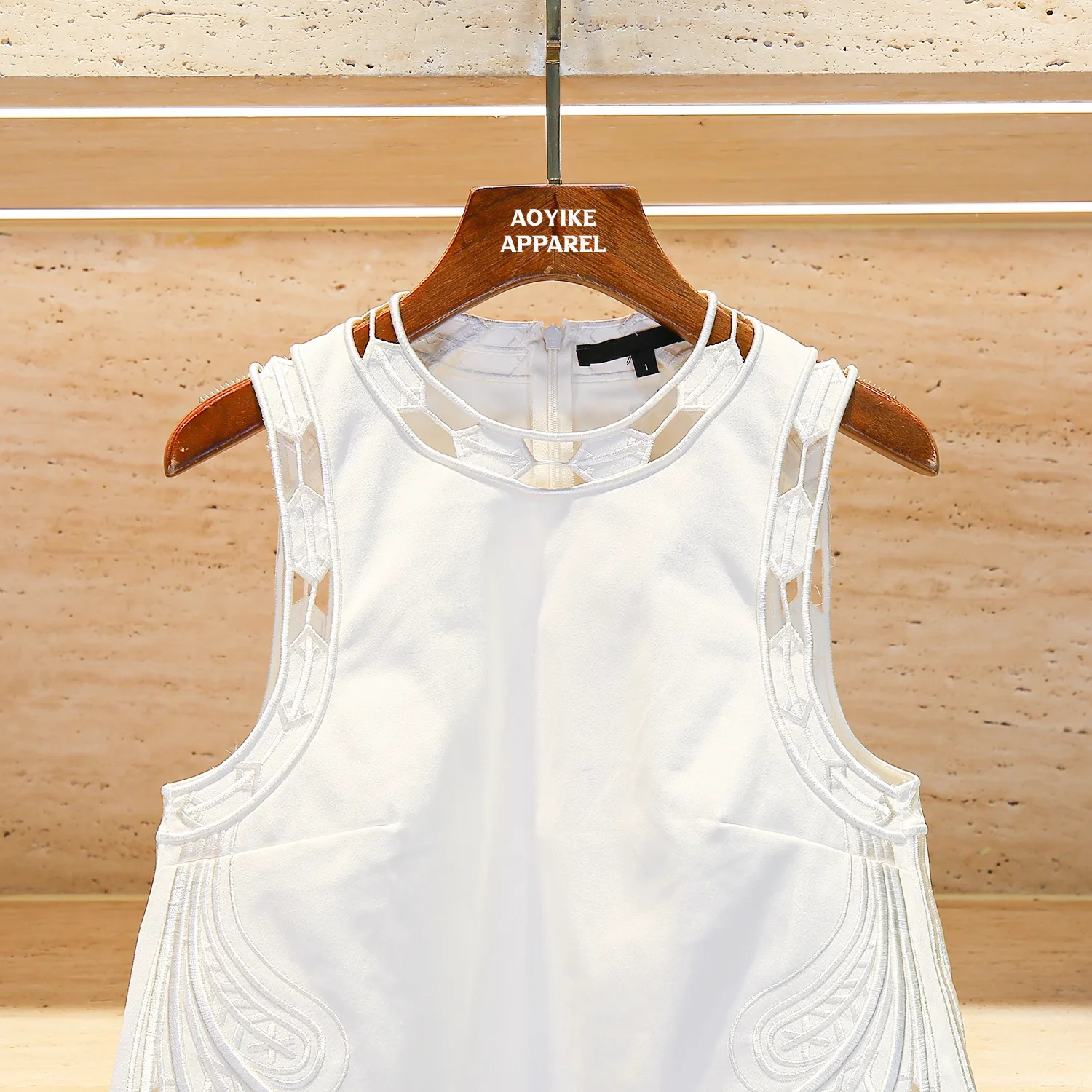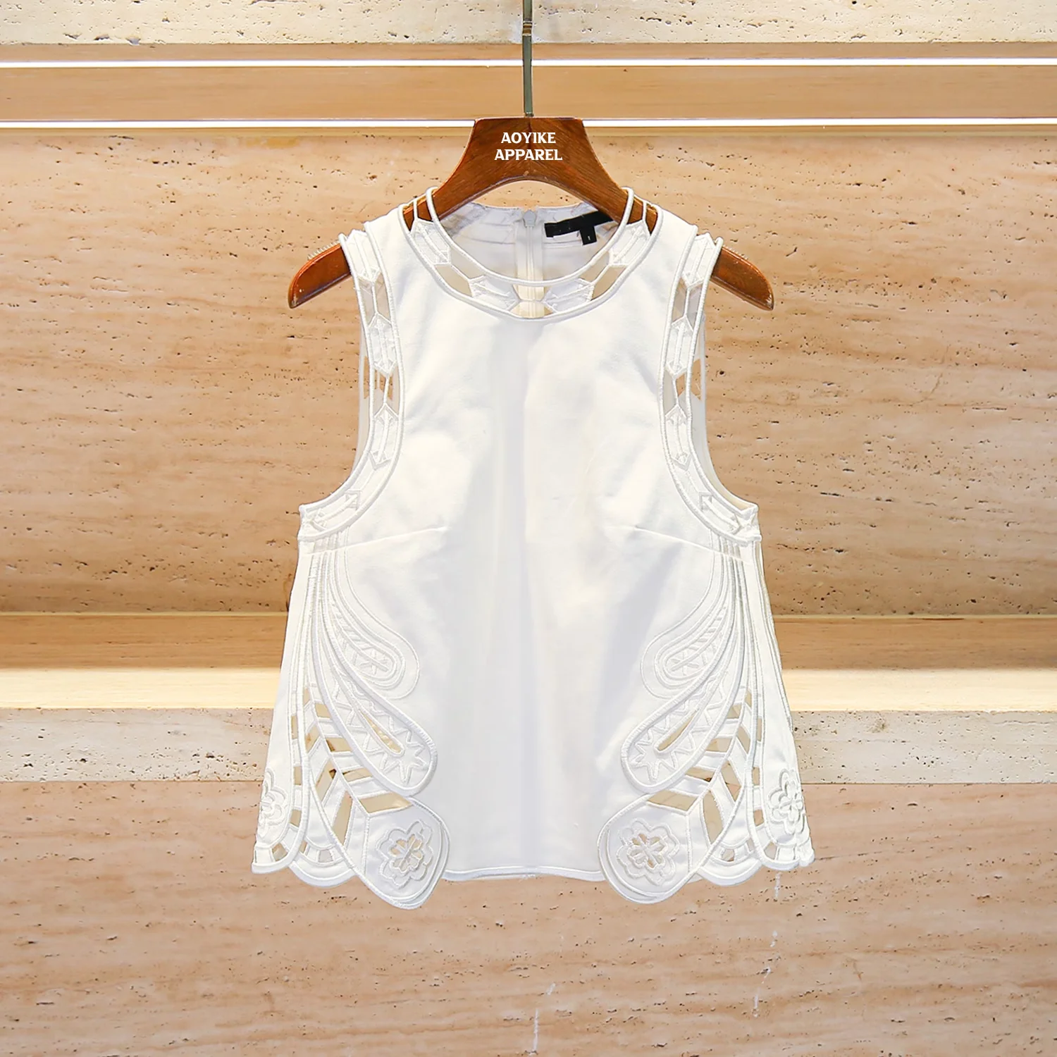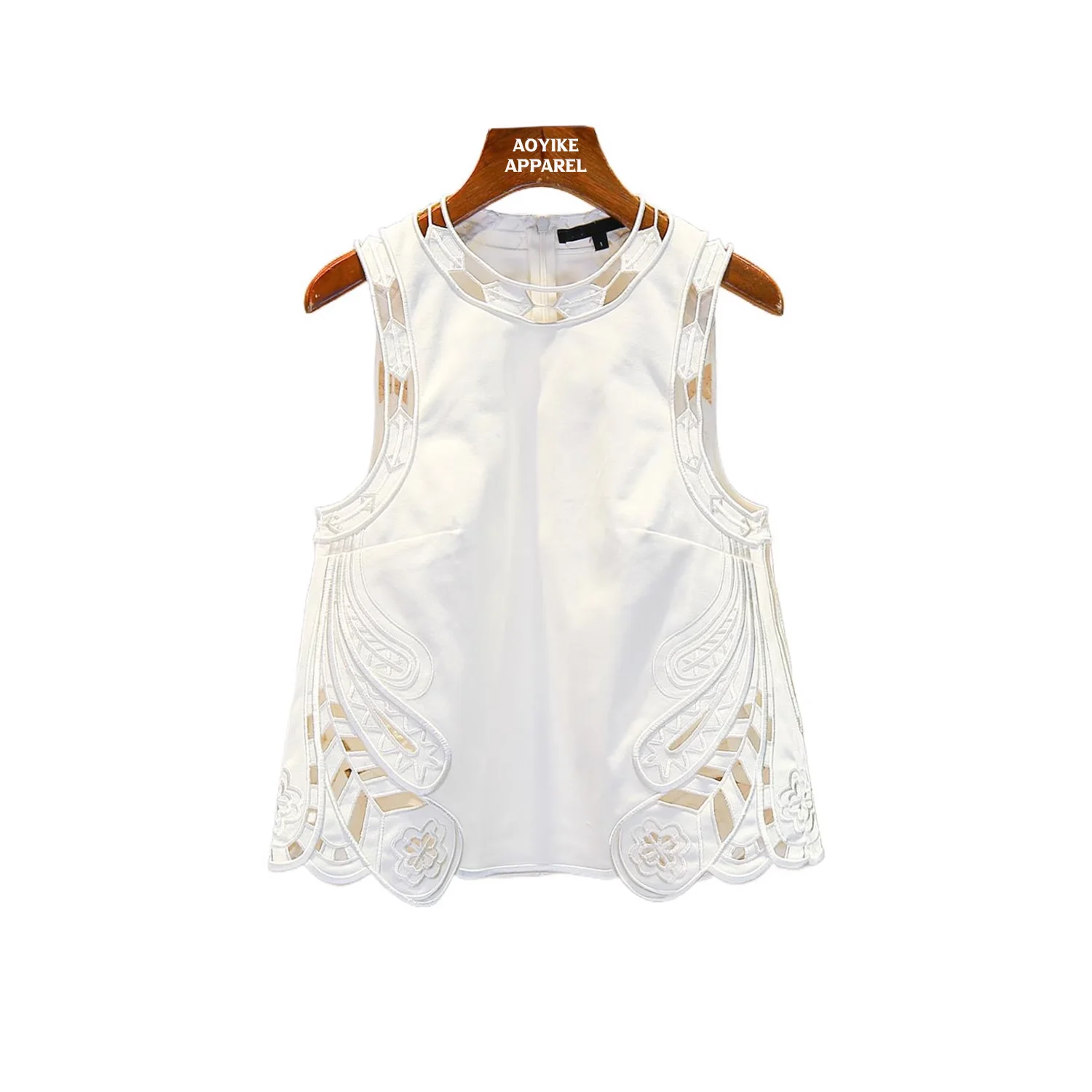 2026 Luxury Women's Fashion Vest Top with Laser Embroidery Hollow Lace Back Center Zipper Breathable Design