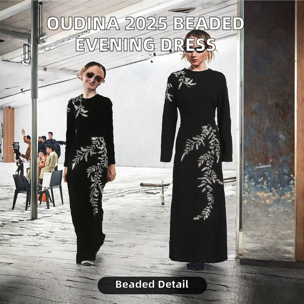 OUDINA 2026 Summer New Round Neck Beaded Slim Elegant Evening Dresses Prom Dress
