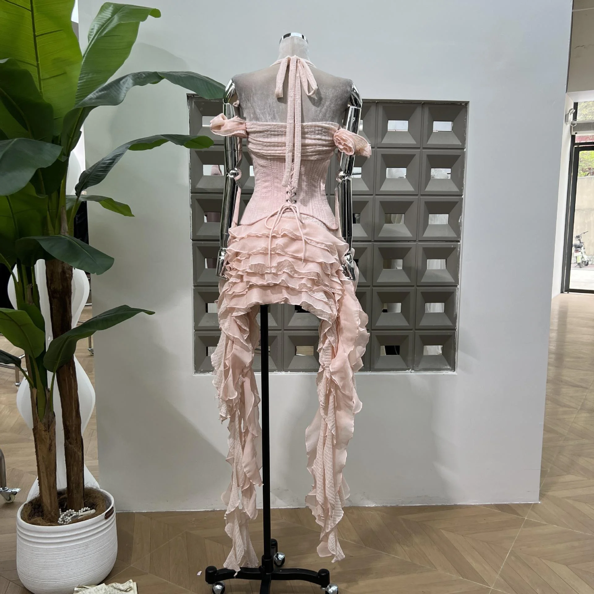 High Quality Romantic Ladies Evening Dress Mini with Corset & Tassels Breathable Natural Waistline for Parties