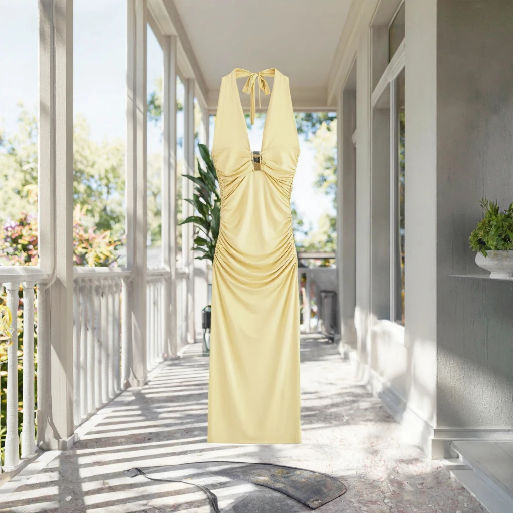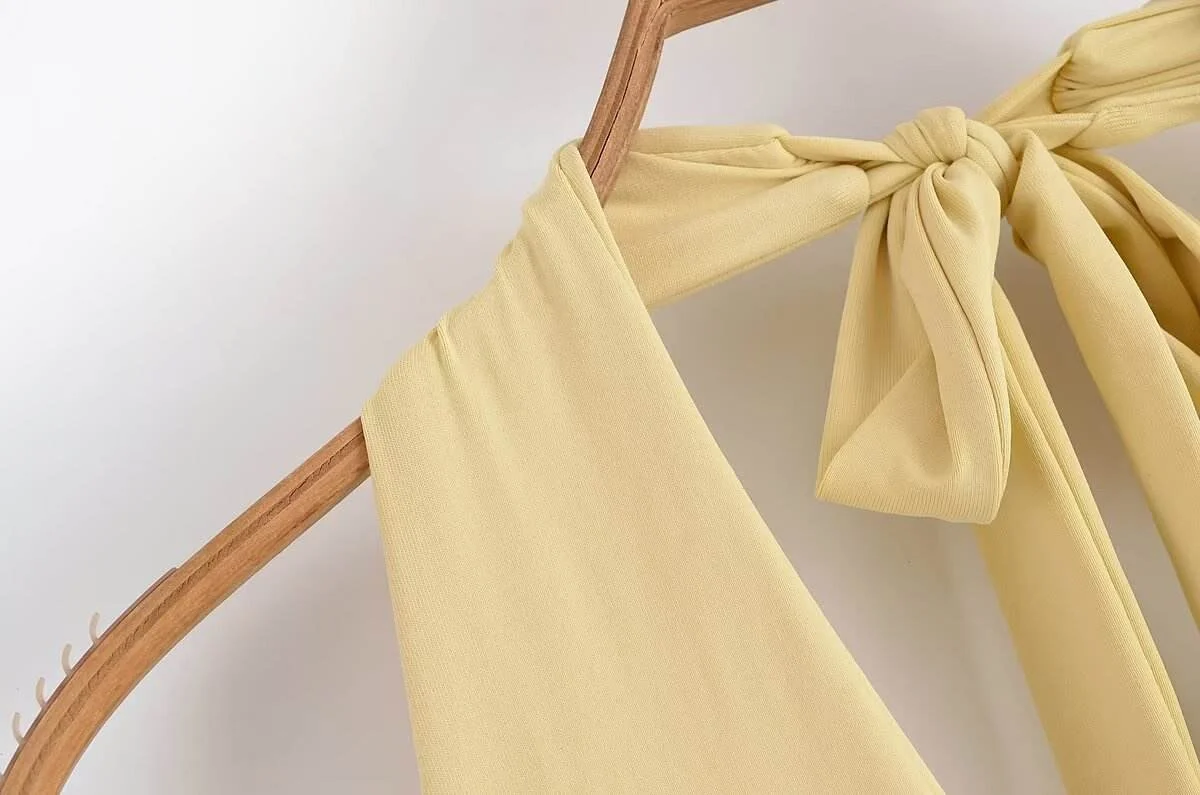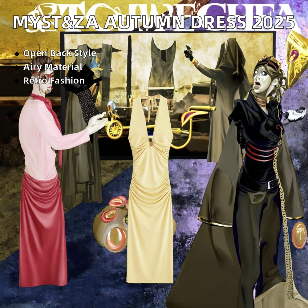 MYST&ZA 2026 Women's Vintage Dress Spring Fashion Sexy Backless Halter Neck Sleeveless Temperament Dress Ruffles New