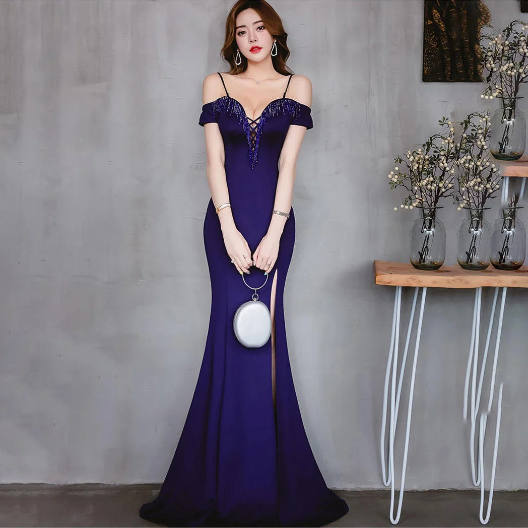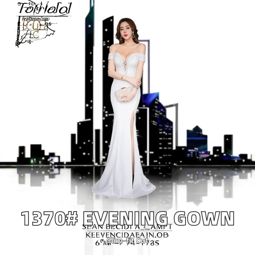 New Year's Eve Performance Dress 1370# Slim-Fit Evening Bridesmaid Gown Spaghetti Strap Empire Waistline Beach-Chic Chiffon