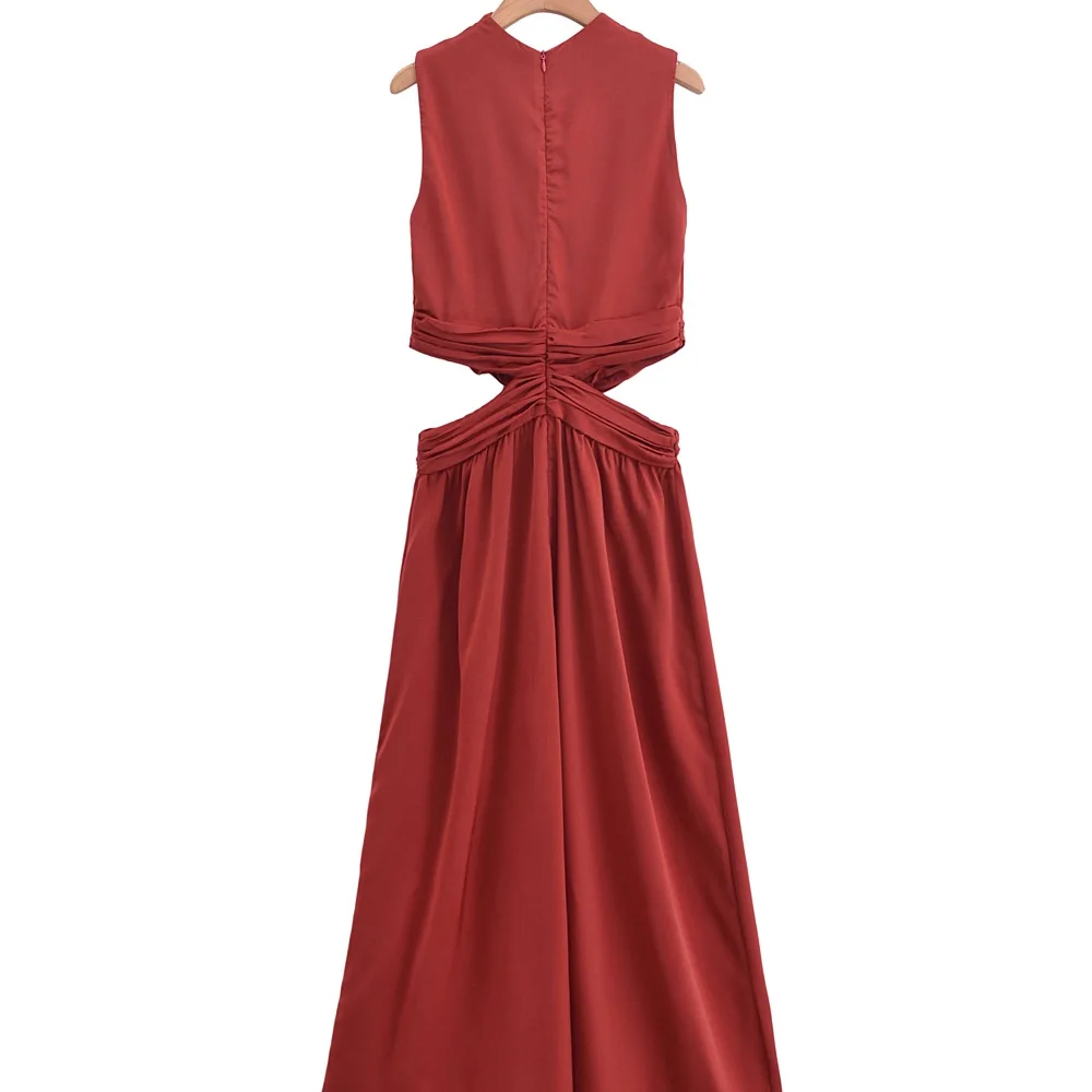 2026 Summer New Casual Midi Dress Waistless Satin Texture Silk Sexy Mid-Calf Length Dress