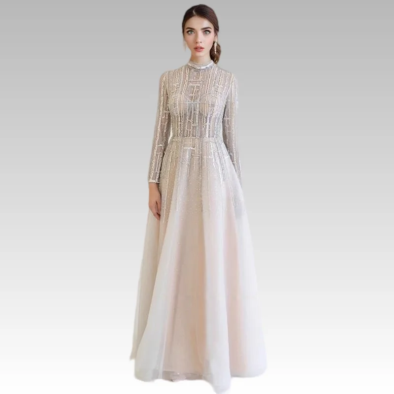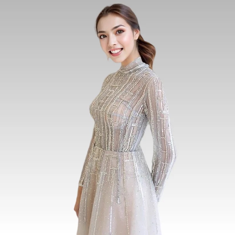 ZYHT 73902 Dark Green Blue Long Sleeve Simple Elegant Evening Dress Customize High End Women Clothing Manufacturer