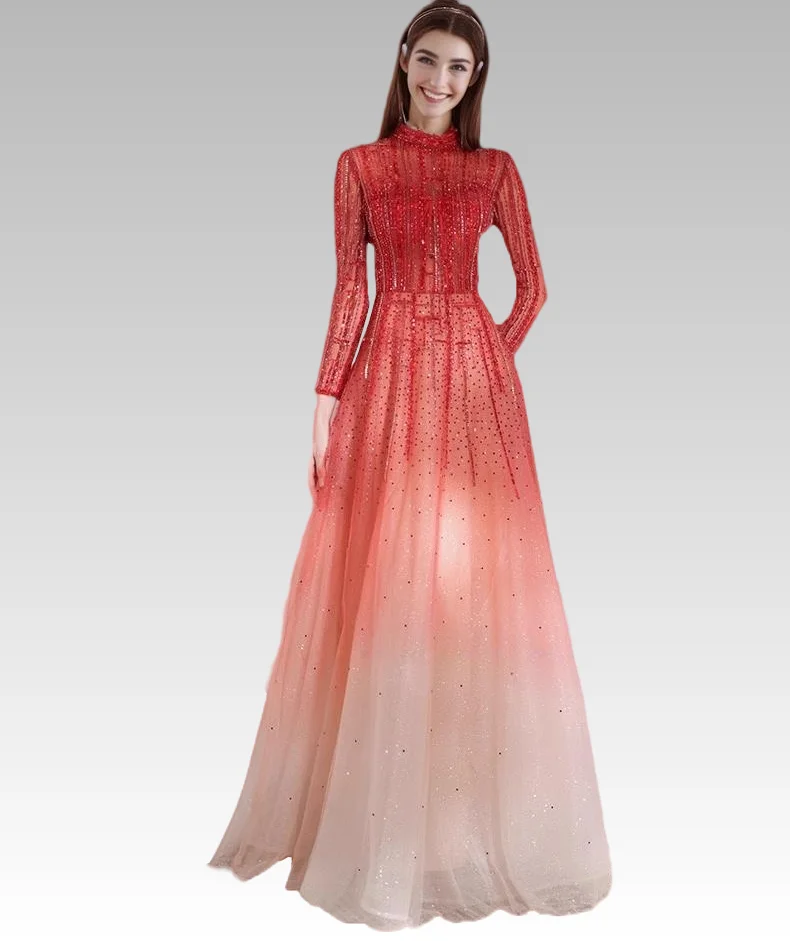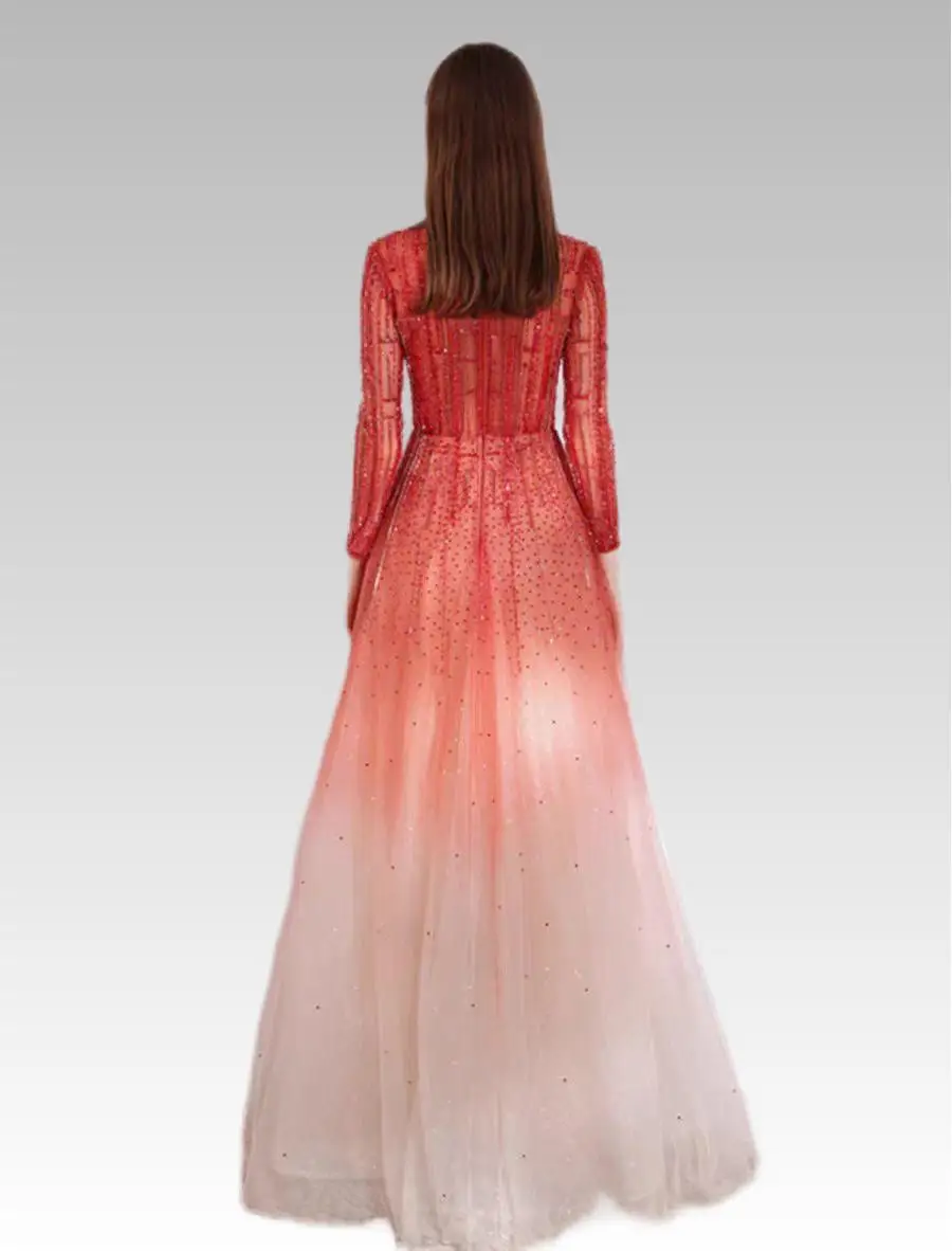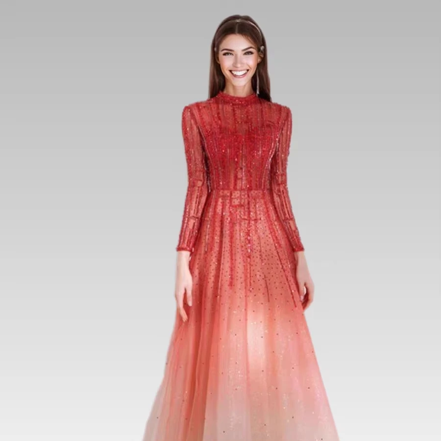 2026AS Luxury Fashion High-End Heavy Embroidery Beaded Sequin Hot Rhinestone Slim Gradient Red Wedding Evening Party Dress