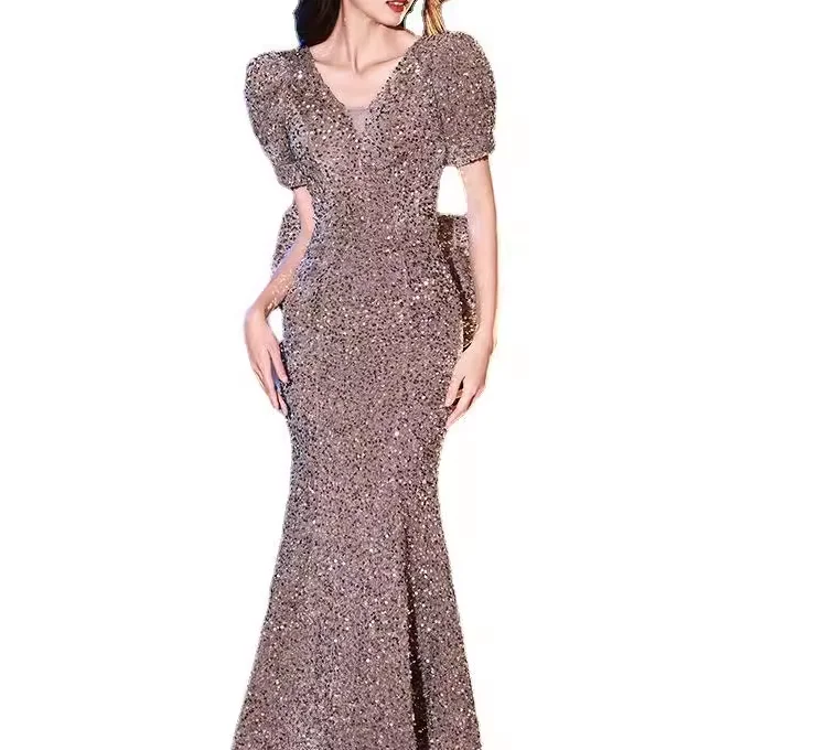 2026 Women's Luxury Banquet Temperament Evening Dress Side Slit Sleeveless Embroidery Sequins Beaded Mermaid Evening Dress