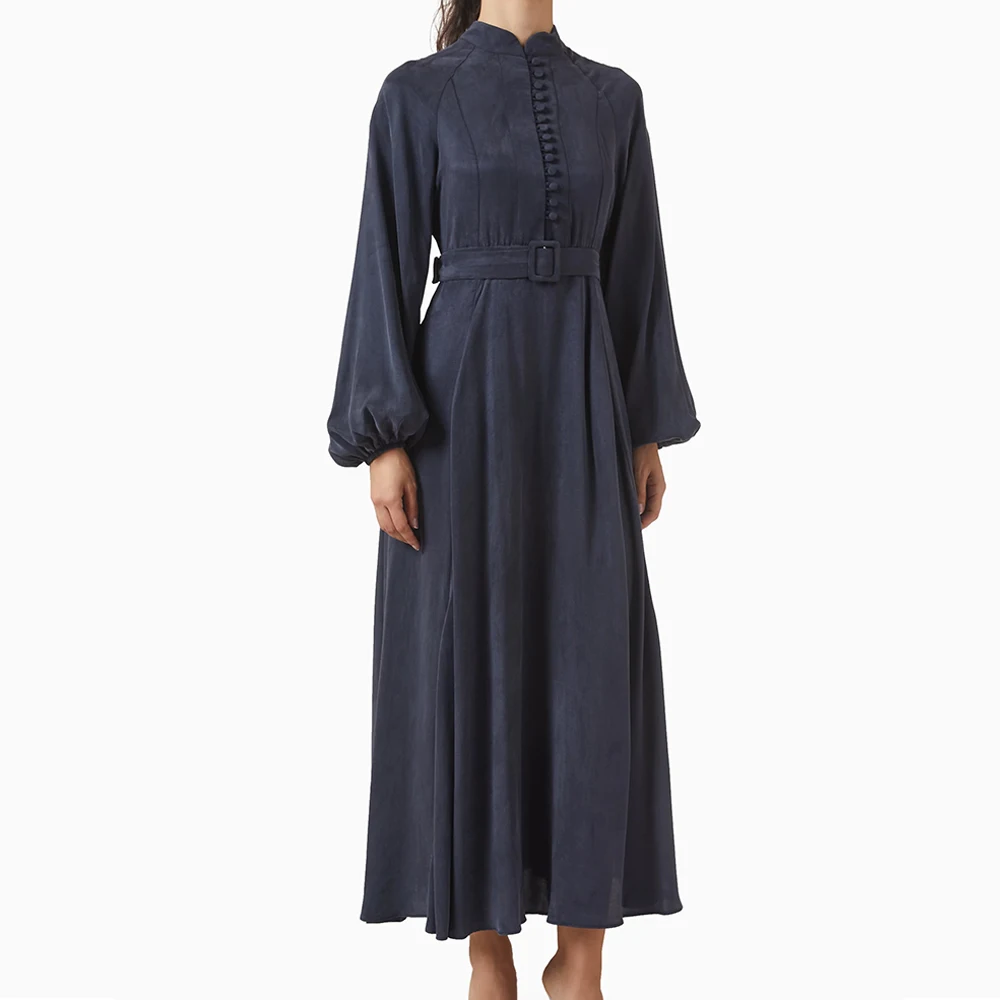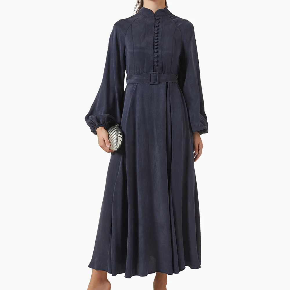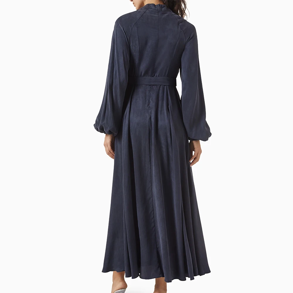 ZYHT 73902 Dark Green Blue Long Sleeve Simple Elegant Evening Dress Customize High End Women Clothing Manufacturer