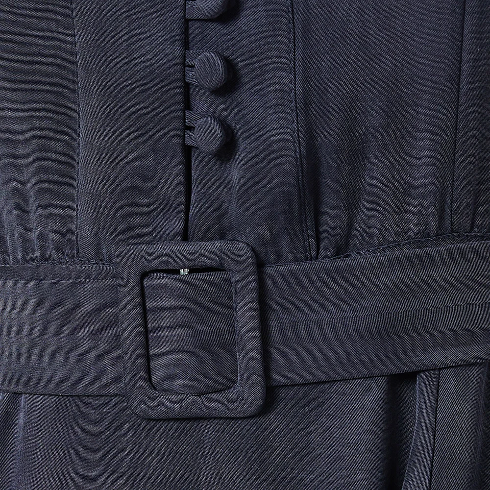 Wisrise Fashion Factory New Design Minimalist&Soft Women's Navy Long Sleeve Self-Tie Belt Flowy Maxi Dress